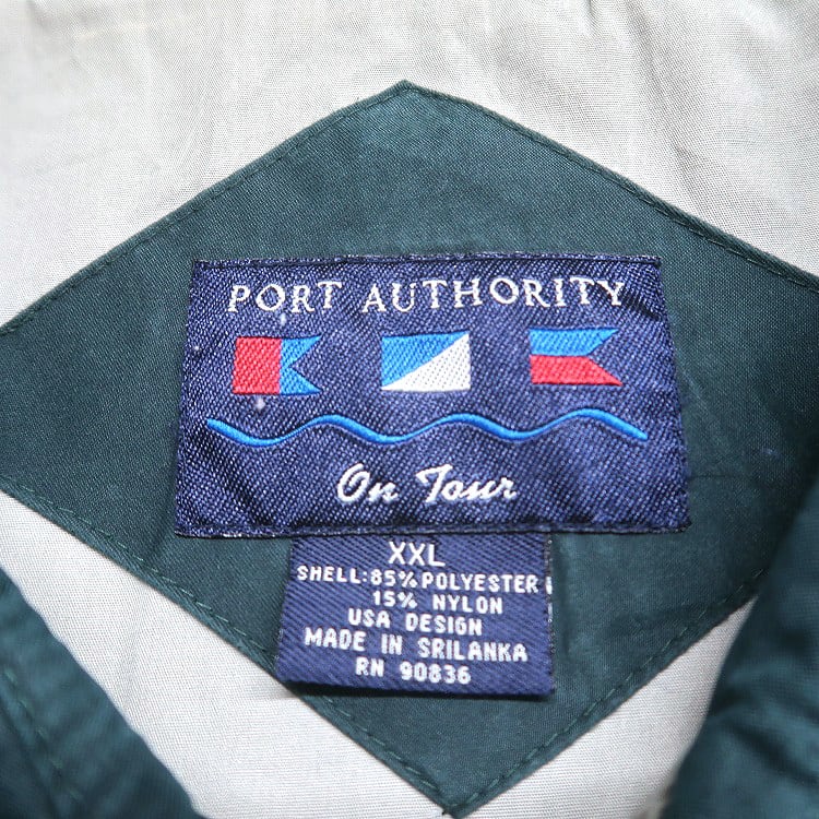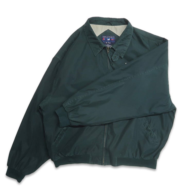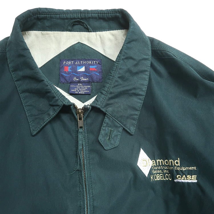 古着 PORT AUTHORITY 企業ロゴ 刺繍 スウィングトップ ブルゾン ピーチスキン グリーン 表記:XXL gd408853n w60320