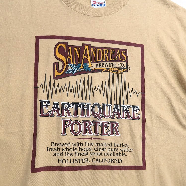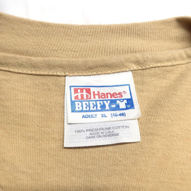 古着 90年代 USA製 HANES ヘインズ プリントTシャツ シングルステッチ ライトカーキ 表記:XL gd408908n w60327