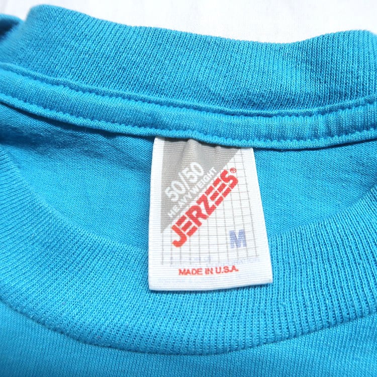 古着 90年代 USA製 JERZEES ジャージーズ プリントTシャツ ライトブルー 表記:M gd408909n w60327