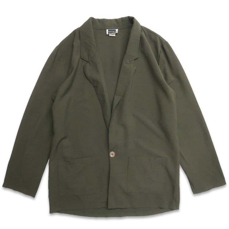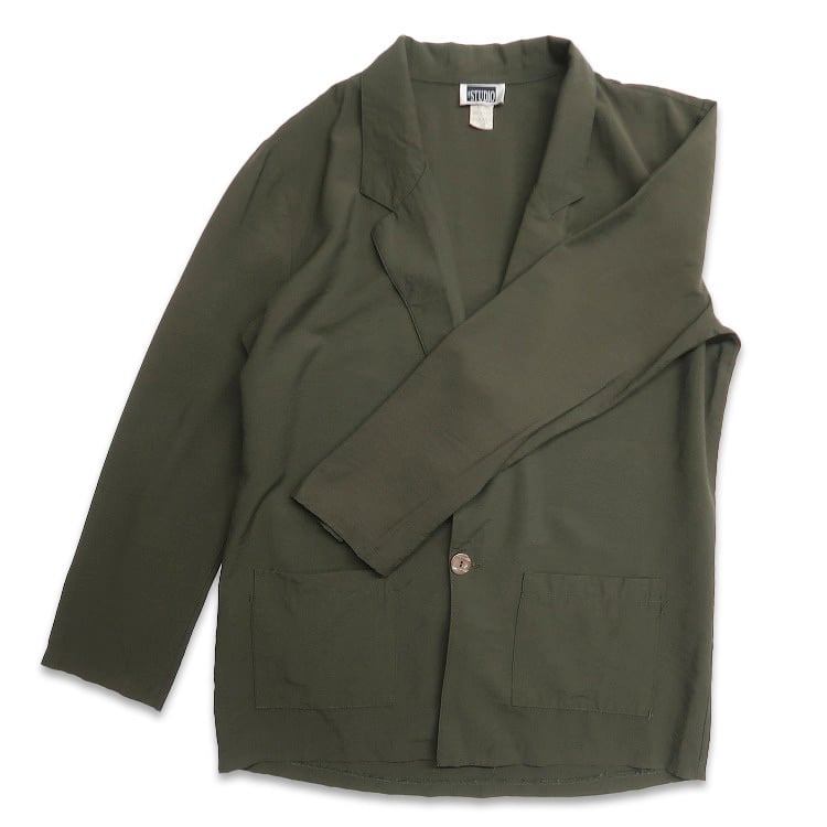 古着 USA製 STUDIO レーヨン イージージャケット テーラードジャケット グリーン系 表記:L gd408911n w60327