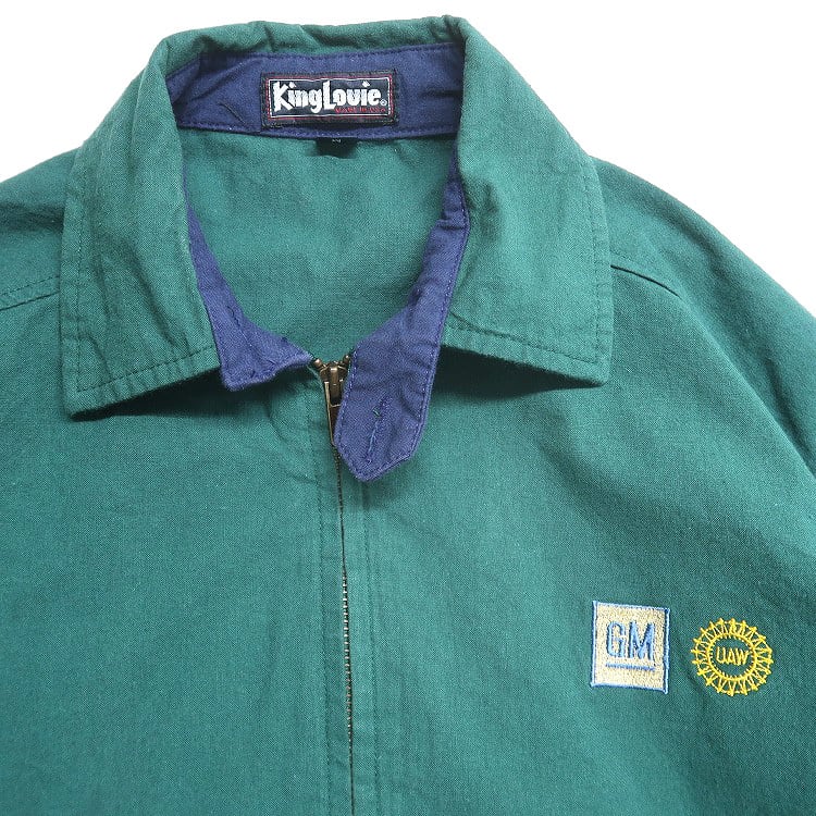 古着 90年代 USA製 King Louie 企業ロゴ GM 刺繡 スウィングトップ ジップアップジャケット ブルゾン グリーン 表記:M gd408914n w60327