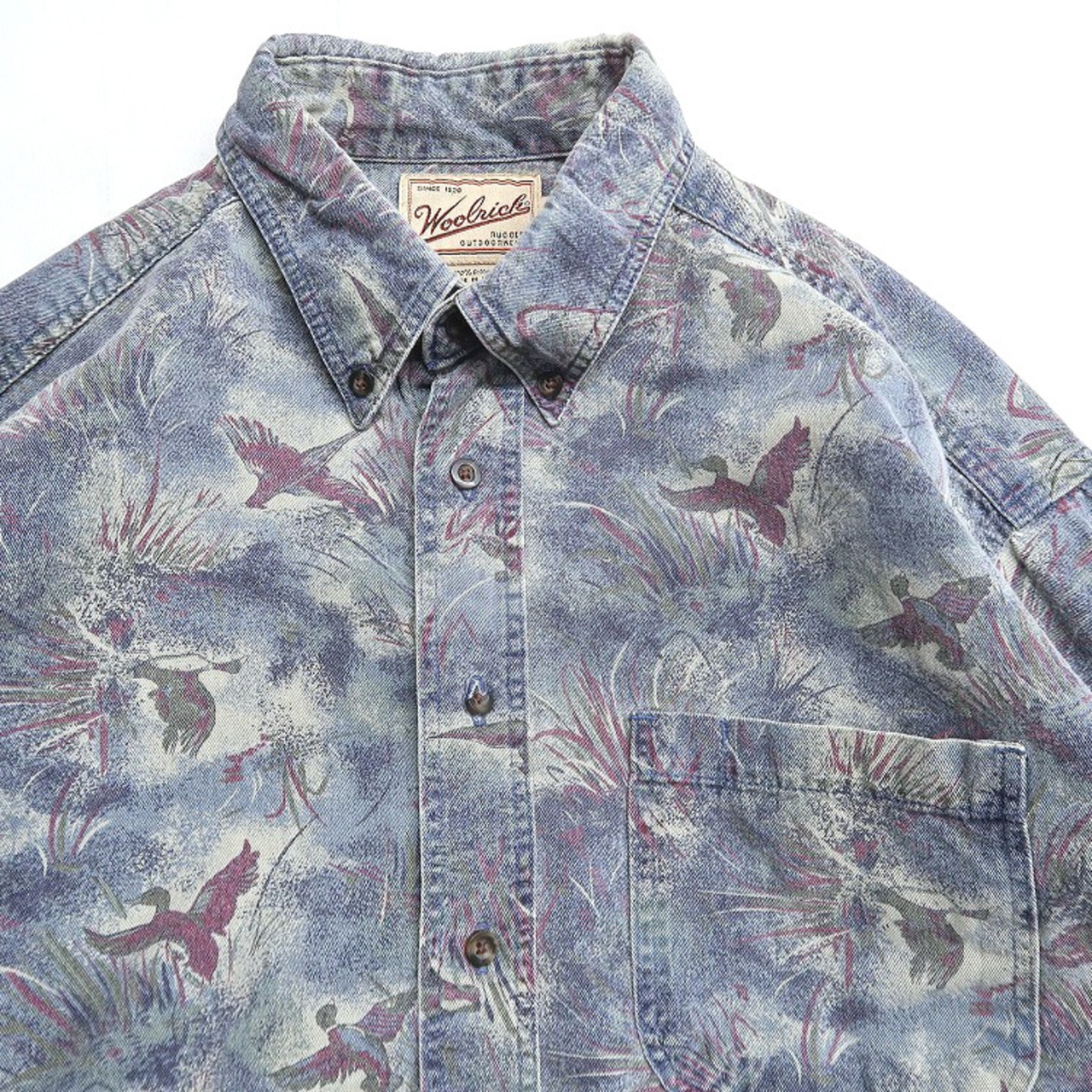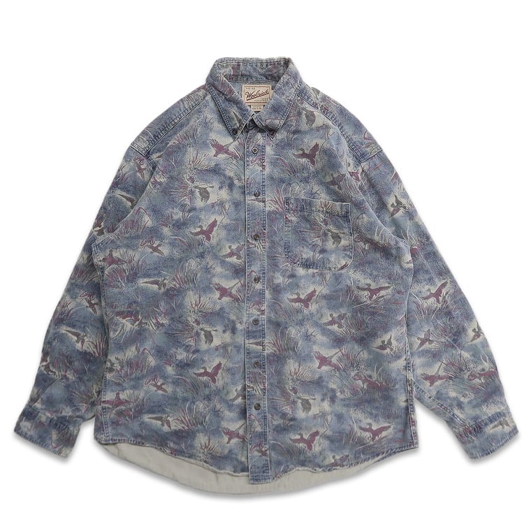 古着 90年代~ USA製 ウールリッチ WOOLRICH 総柄 鴨 ハンティング柄 長袖シャツ ボタンダウンシャツ 表記:L gd408922n w60328