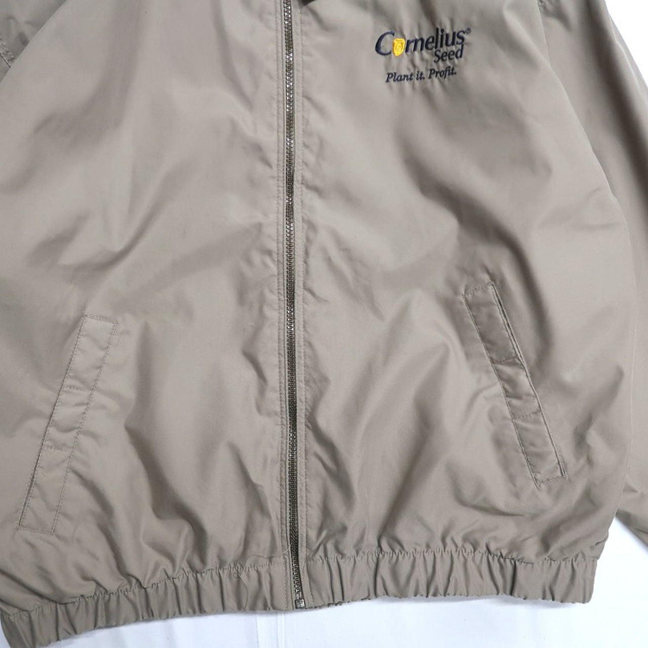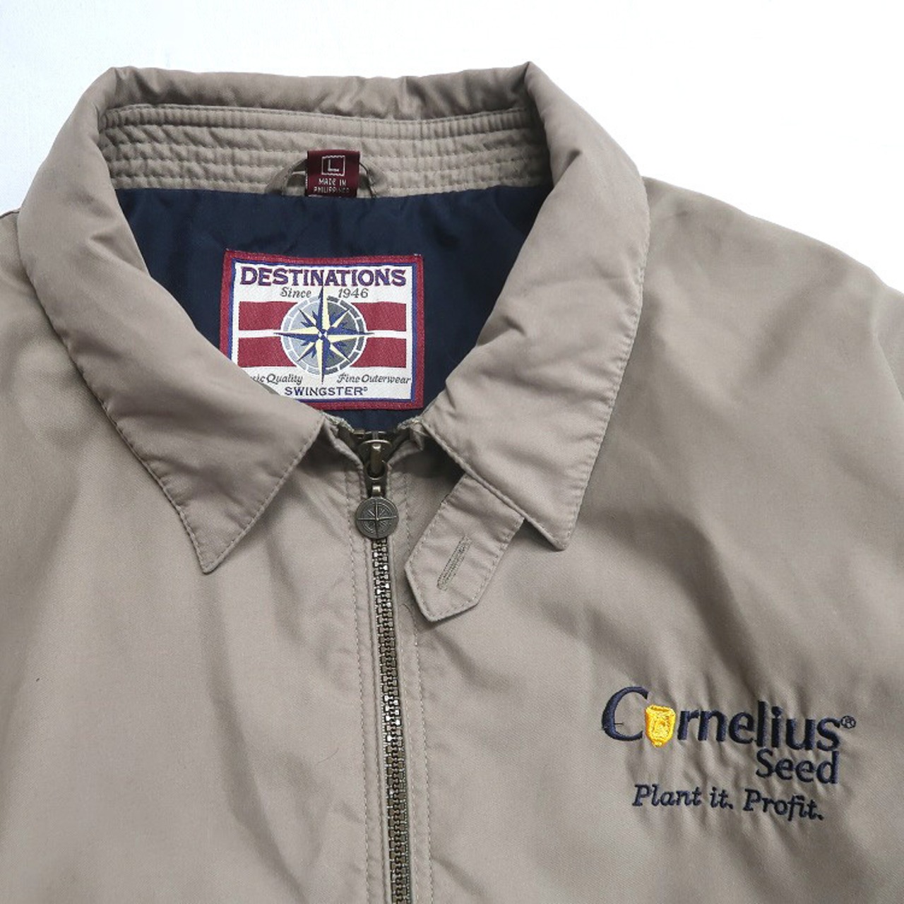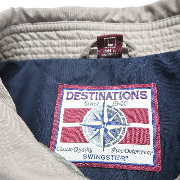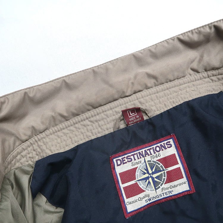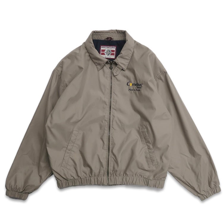 古着 DESTINATIONS 企業ロゴ 刺繍 ジップアップジャケット スウィングトップ ブルゾン ベージュ ブラウン系 表記:L gd408939n w60330