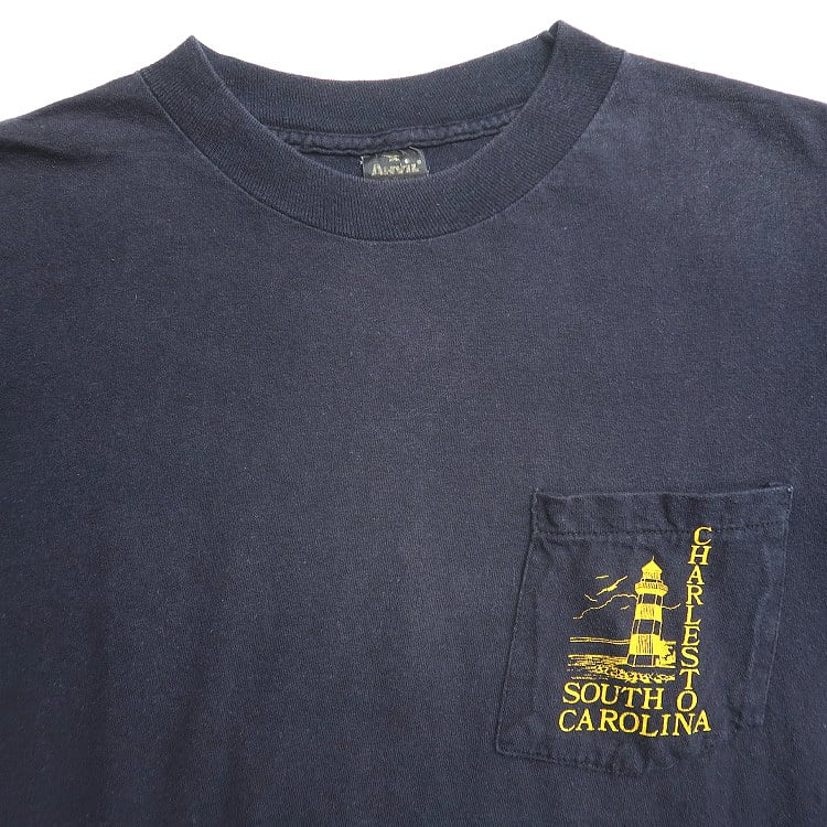 古着 80年代~ アンビル Anvil プリント ポケットTシャツ シングルステッチ ブラック 表記:L gd408983n w60403