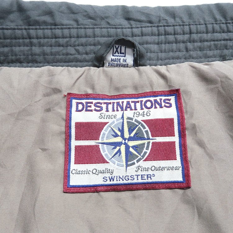 古着 DESTINATIONS 企業ロゴ 刺繍 ジップアップジャケット スウィングトップ ブルゾン オリーブ グリーン系 表記:XL gd408987n w60403