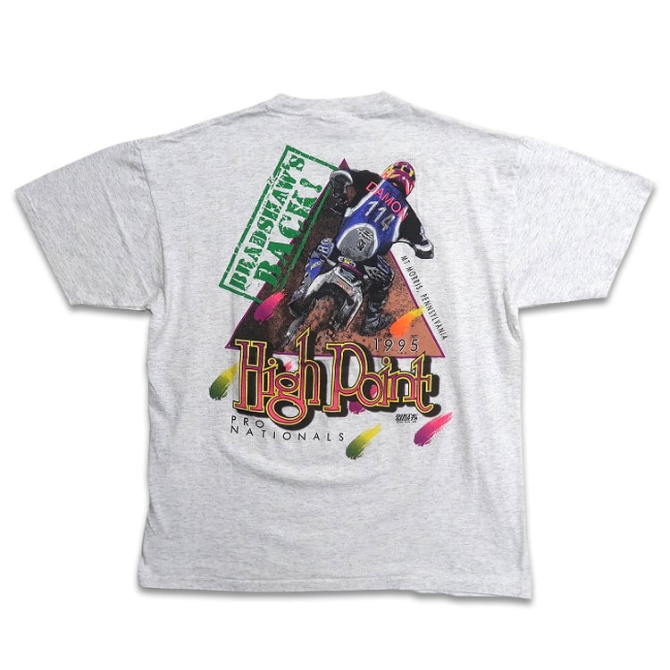 古着 90年代 ONEITA オニータ レーシング プリントTシャツ シングルステッチ 杢グレー 表記:XL gd409008n w60406