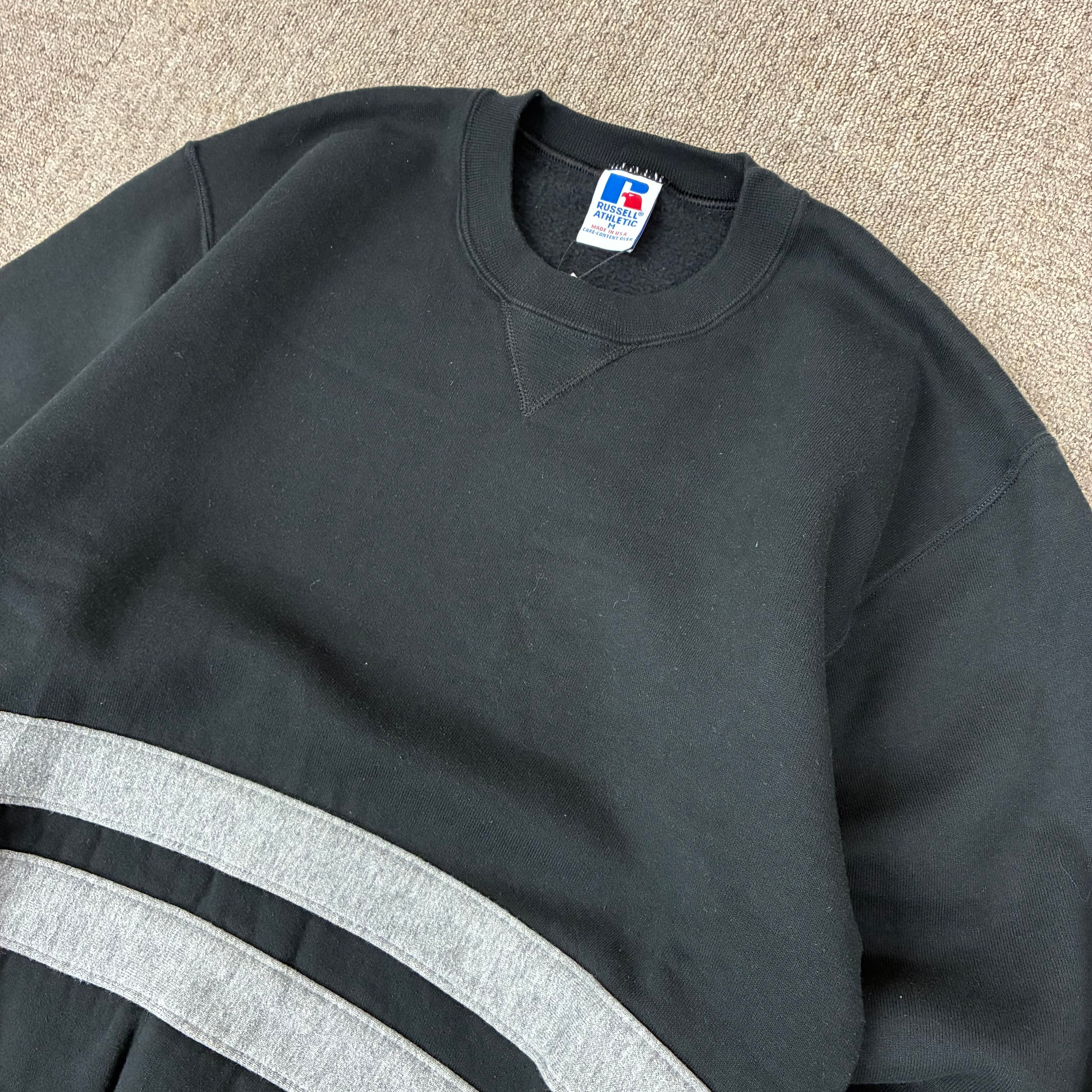 USA製 90年代 "M" RUSSELL ATHLETIC 無地スウェット リメイク 黒 ブラック 古着 古着屋 高円寺 ビンテージ n60408