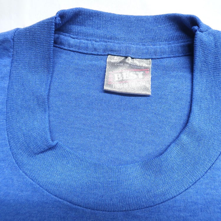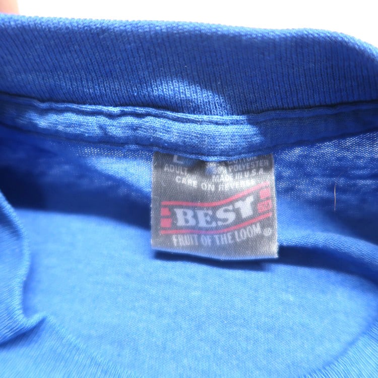 古着 90年代 USA製 フルーツオブザルーム プリントTシャツ シングルステッチ ブルー 表記:L gd409081n w60413