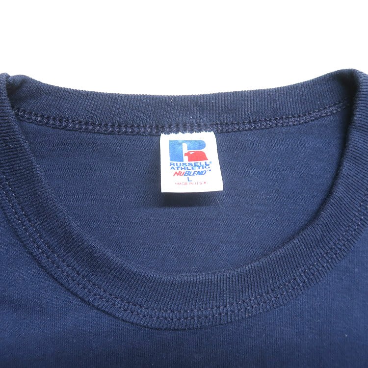 古着 90年代 USA製 ラッセル RUSSELL プリントTシャツ シングルステッチ ネイビー 表記:L gd409093n w60414