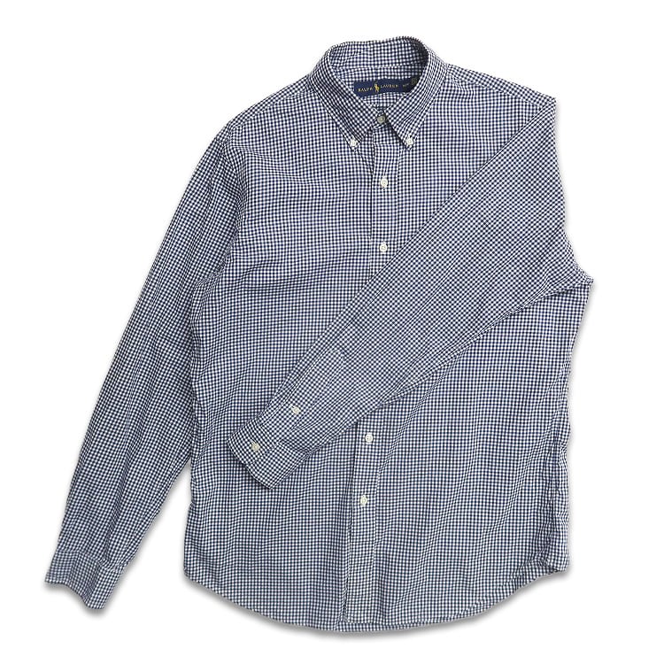 古着 ラルフローレン Ralph Lauren ボタンダウンシャツ 長袖シャツ ギンガムチェック ネイビー 表記:M gd409154n w60420