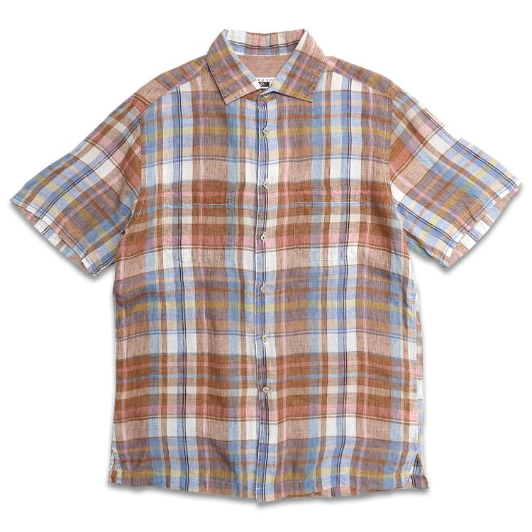 古着 JOSEPH ABBOUD リネン 半袖シャツ ボックスシャツ チェック 表記:L gd409178n w60422