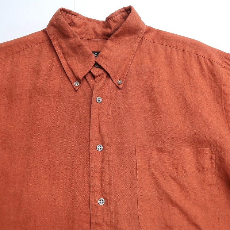 古着 JOS. A. BANK リネン ボタンダウンシャツ 半袖シャツ オレンジ系 表記:L gd409200n w60424