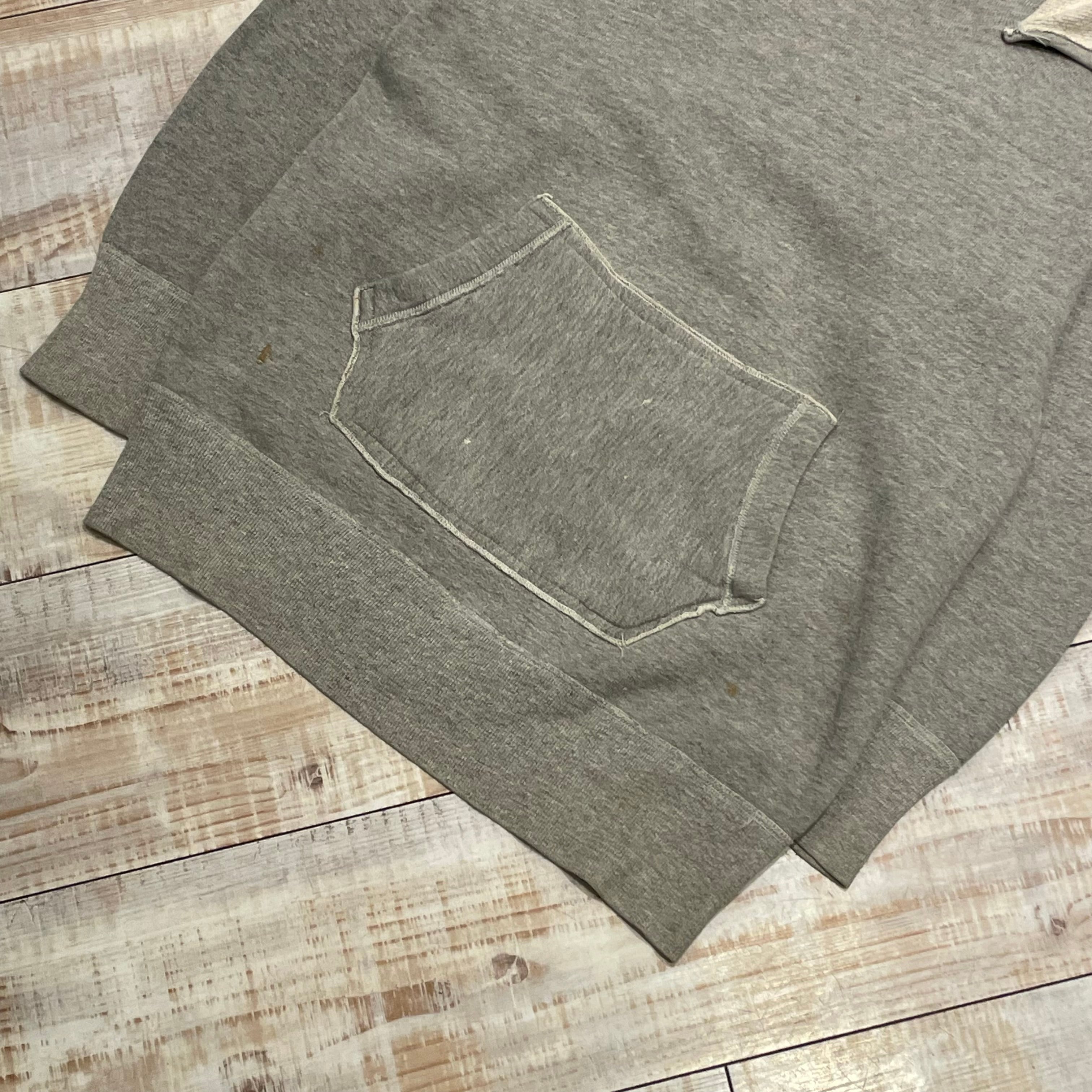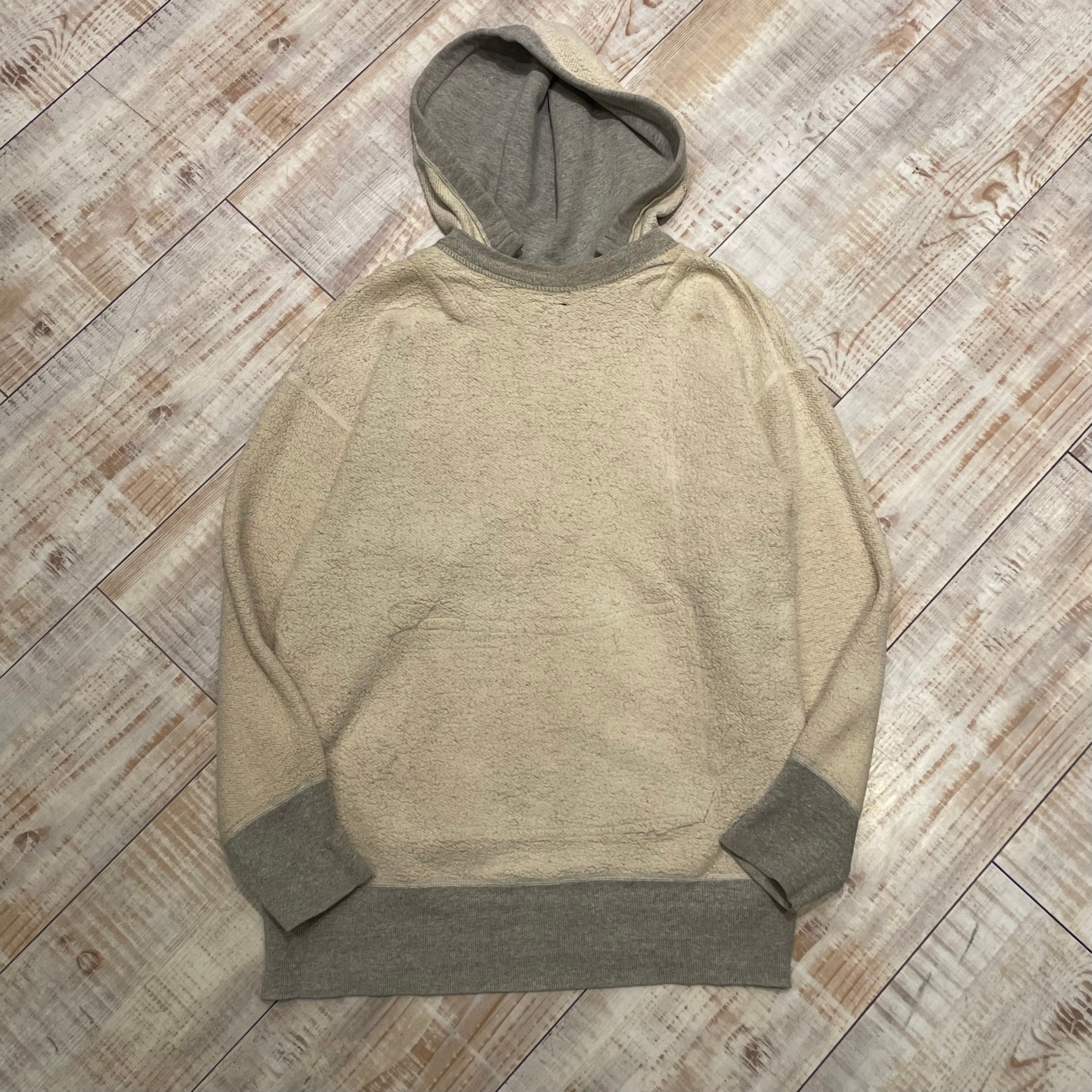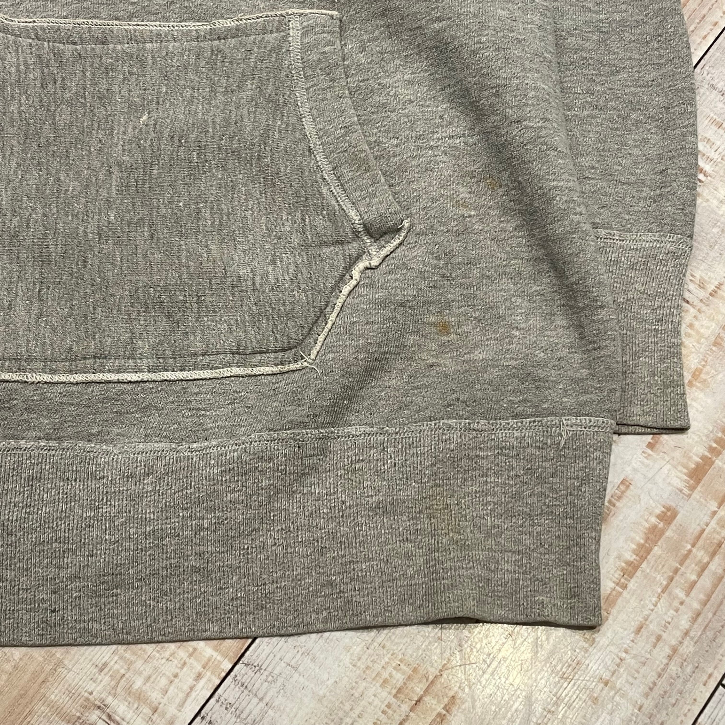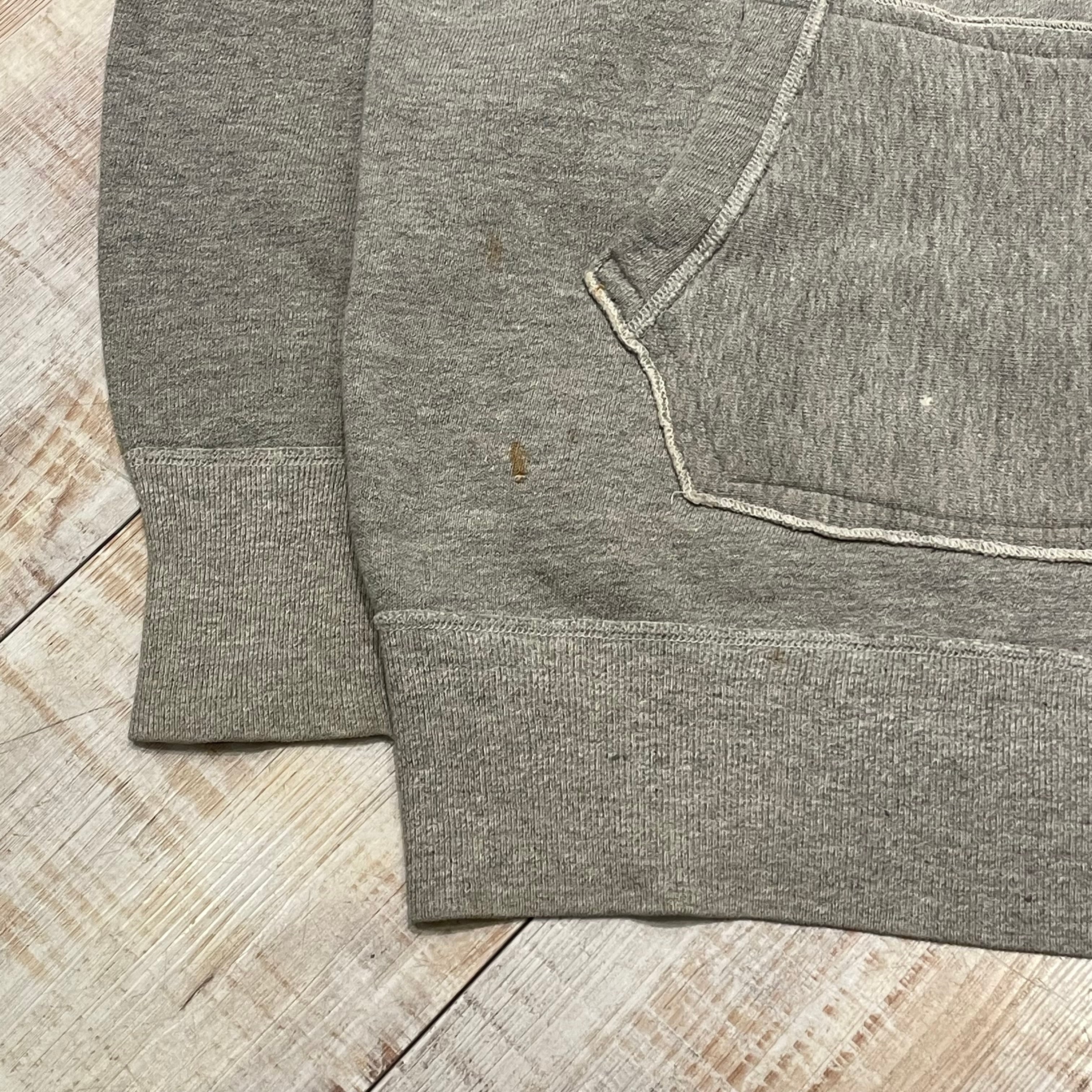 ~1950年代頃の後付けパーカーでございます。着用しやすいグレーボディーで、この年代のスウェットととしてはサイズも大きい希少なアイテムでございます。
