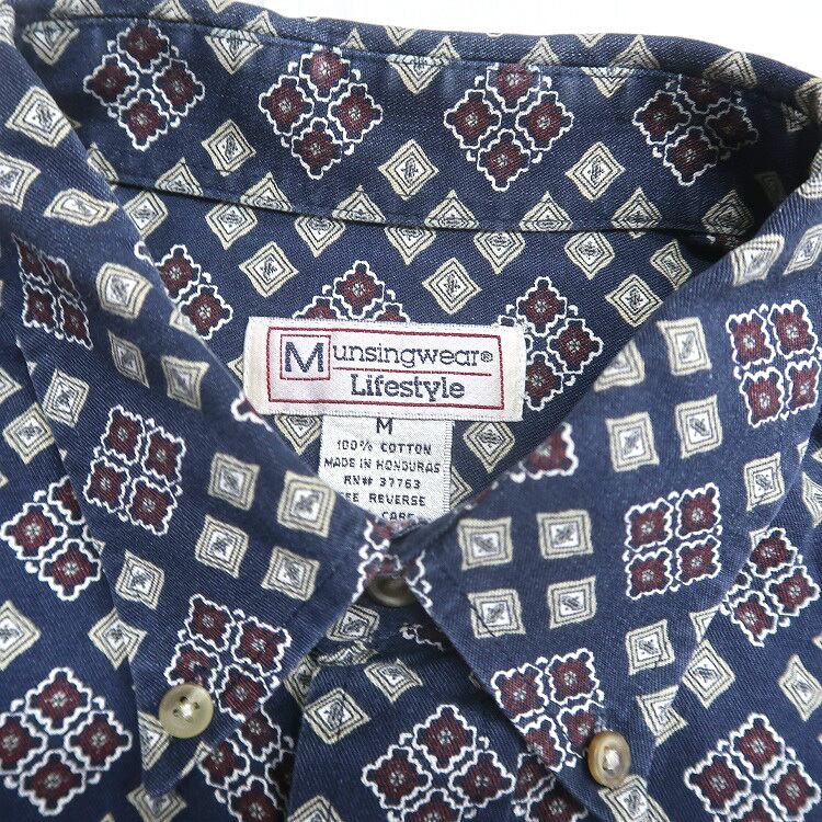 古着 Munsingwear 総柄 ボタンダウンシャツ 長袖シャツ 表記:M gd409245n w60429
