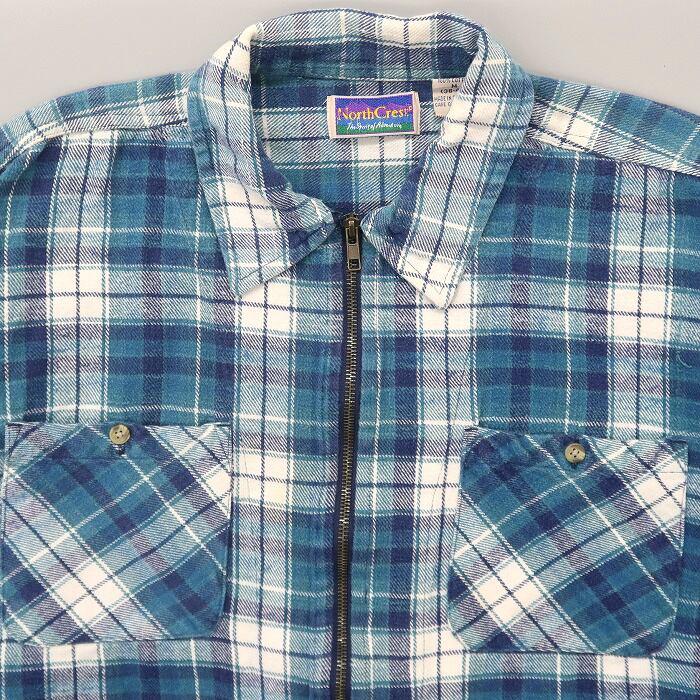 古着 長袖シャツ ボックス チェック 長袖 フルジップ ブルーベース サイズ表記:M gd66402