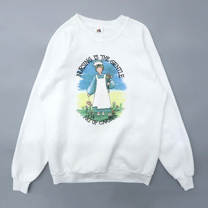 古着 90年代 USA製 フルーツオブザルーム プリントスウェット トレーナー ホワイト ビンテージ サイズ表記:L gd73973