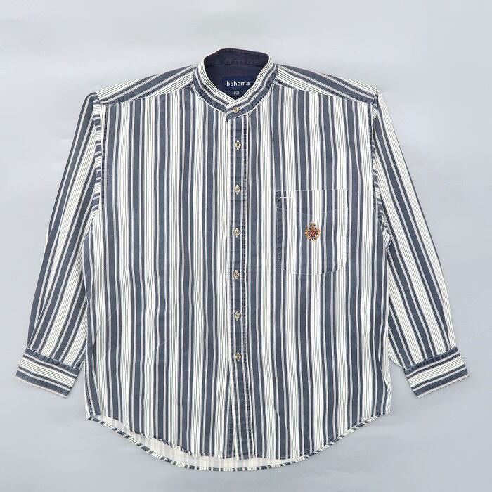 古着 バンドカラーシャツ ストライプ 長袖 ネイビー ホワイト グリーン サイズ表記:M gd76465 | 古着屋SLAT オンラインショップ 【古着通販】|東京 高円寺 レギュラー・ヴィンテージ古着