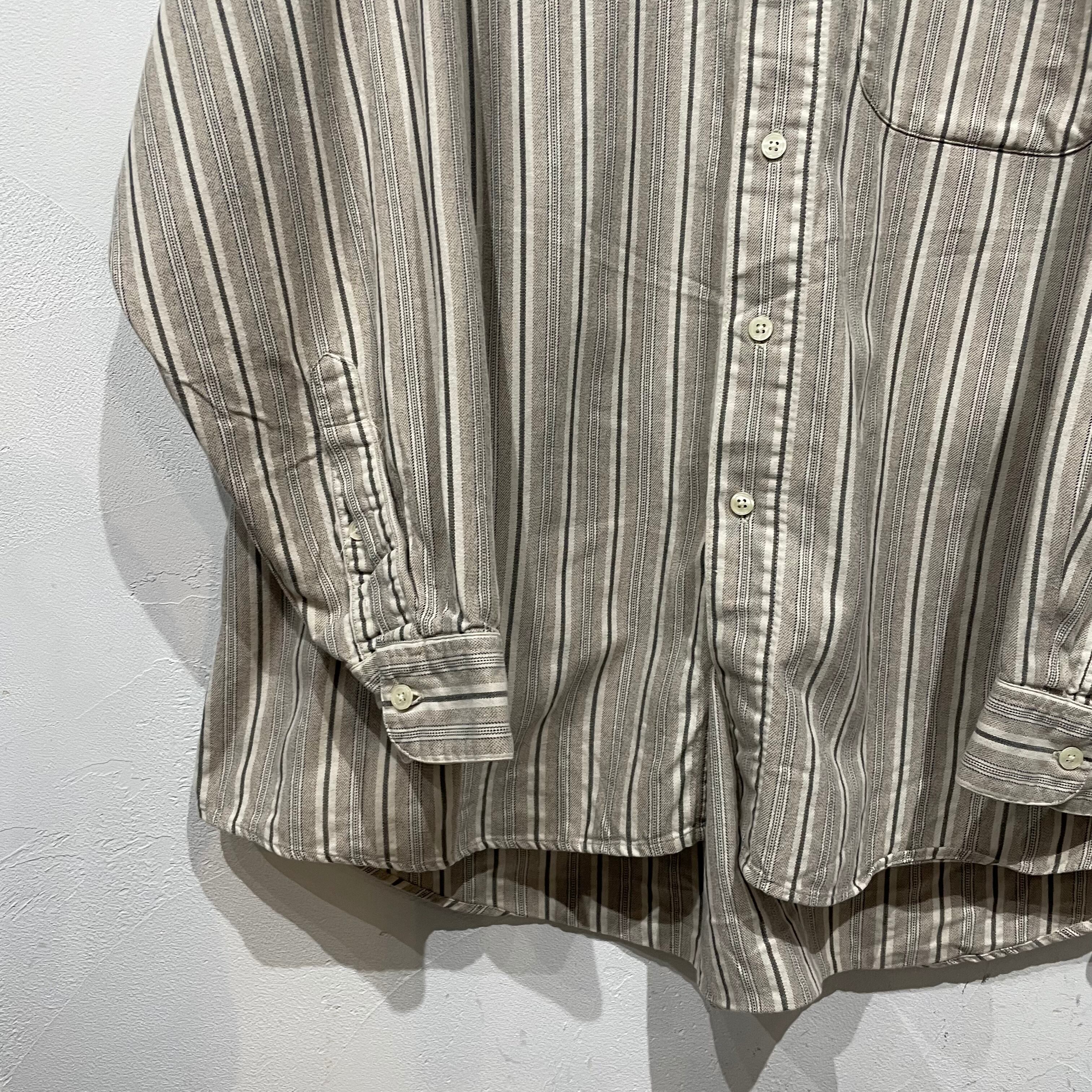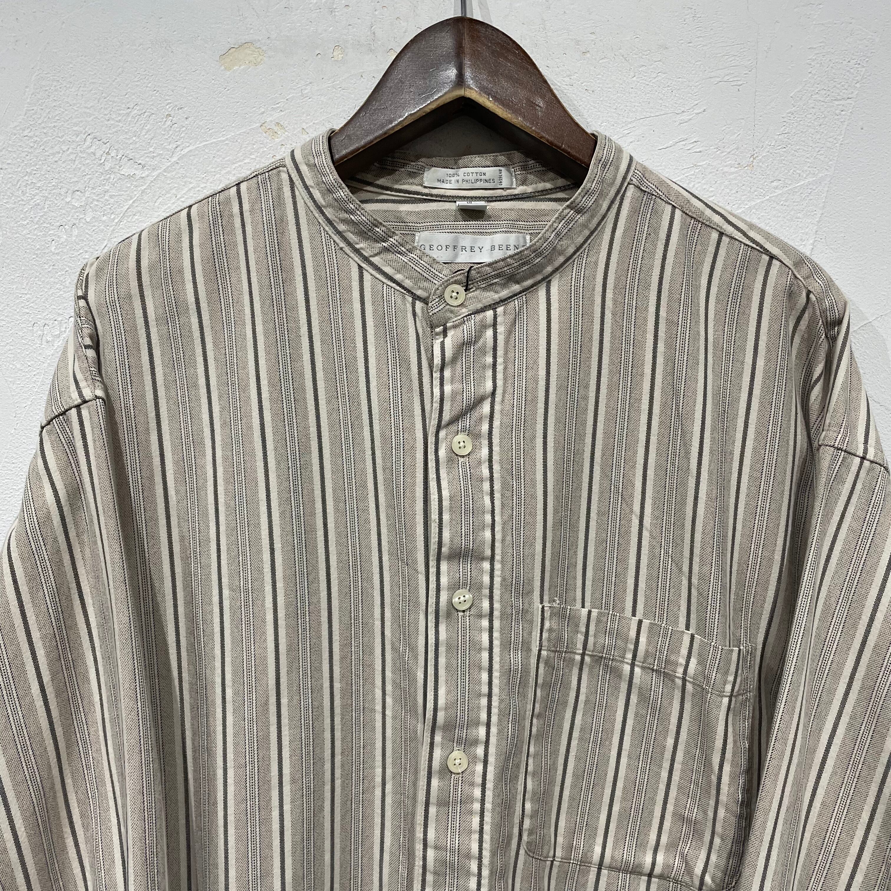 size:XL【GEOFFREY BEENE 】L/S ストライプシャツ 長袖シャツ スタンドカラー 古着 古着屋 高円寺 ビンテージ