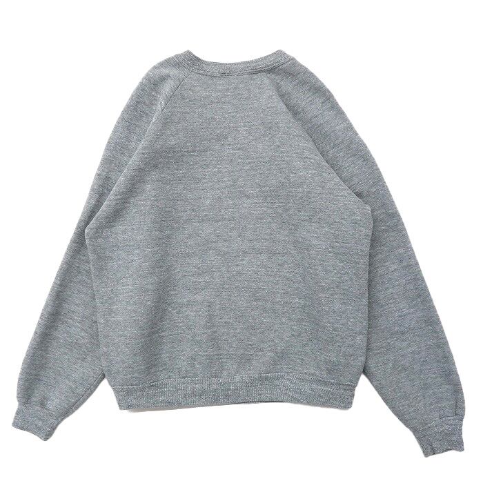 ■説明:全体的に使用感があるほか、内タグの欠損、フロント右脇付近に汚れがありますが、古着らしい良い雰囲気があります。ラグランスリーブ、コットン×ポリの80年代頃の代表的な生地感と暗めのグレーボディが目を惹きます。