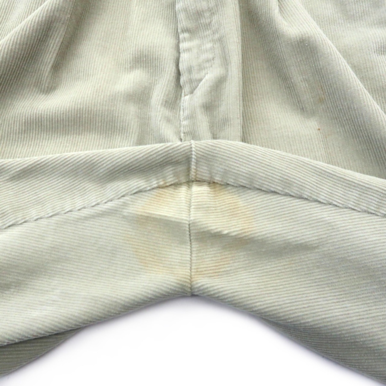 ■説明:全体的に使用感があるほか、フロント左もも、股に薄汚れ、フロント右もも、バック右裾に軽いダメージがありますが、古着慣れした方なら気にならない程度かと思います。