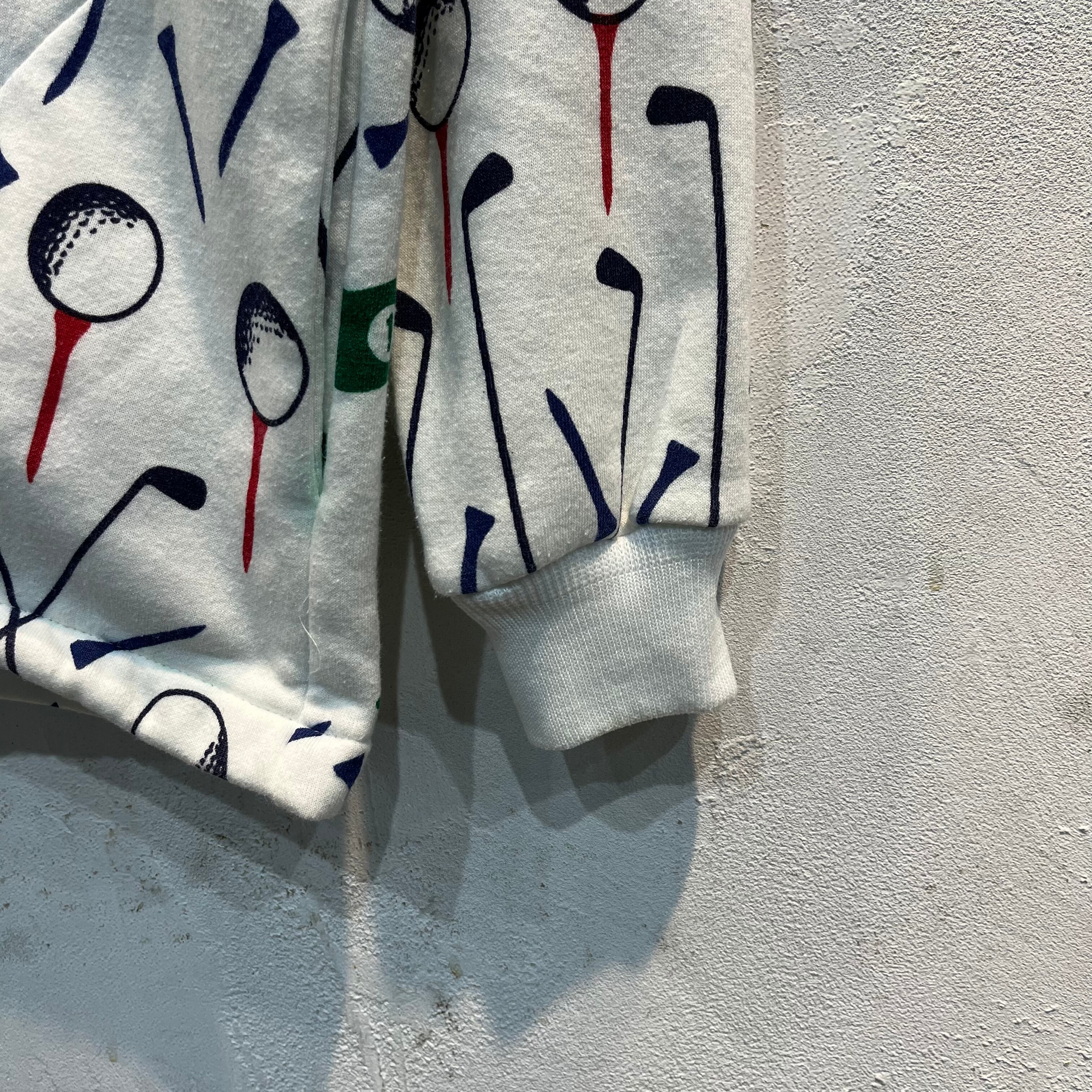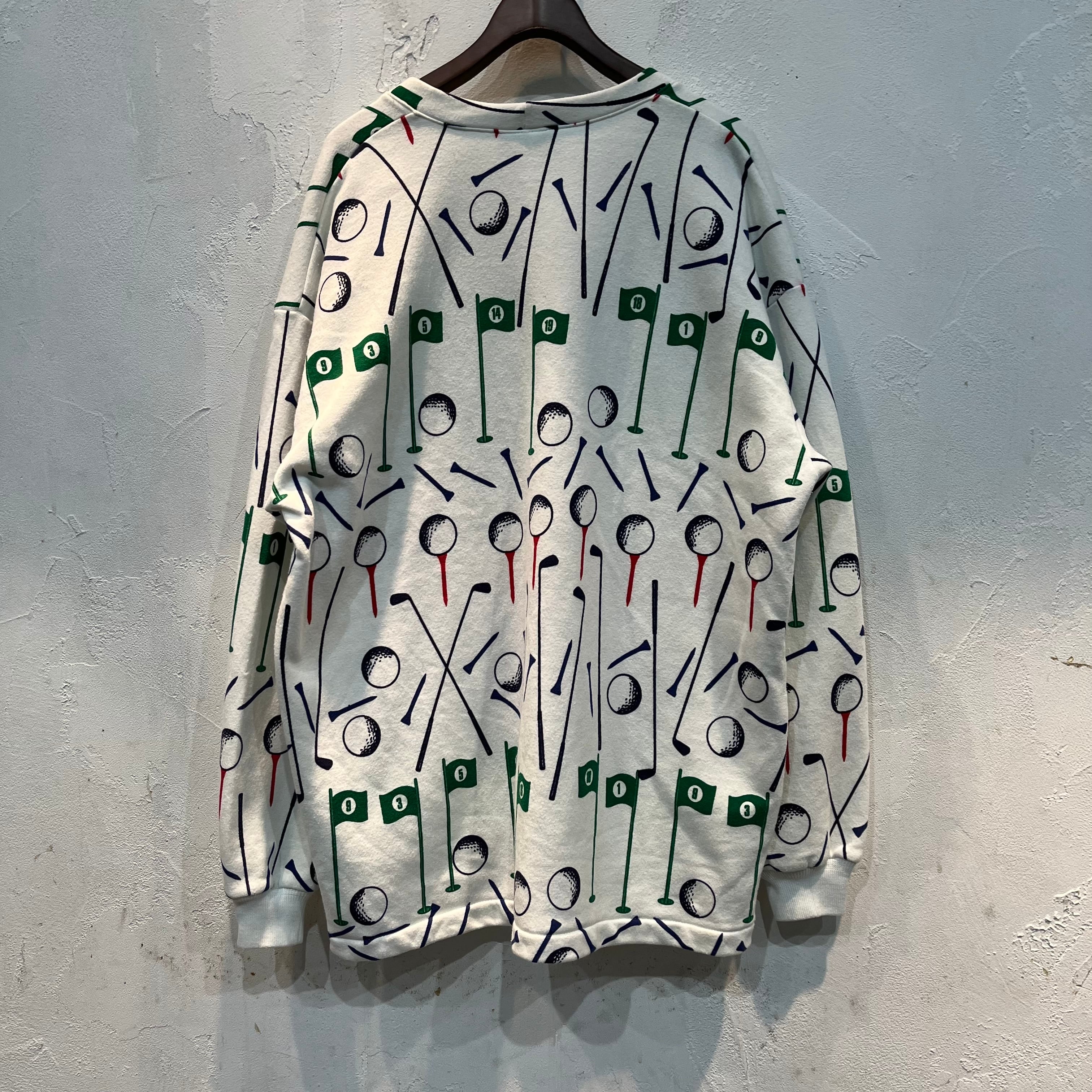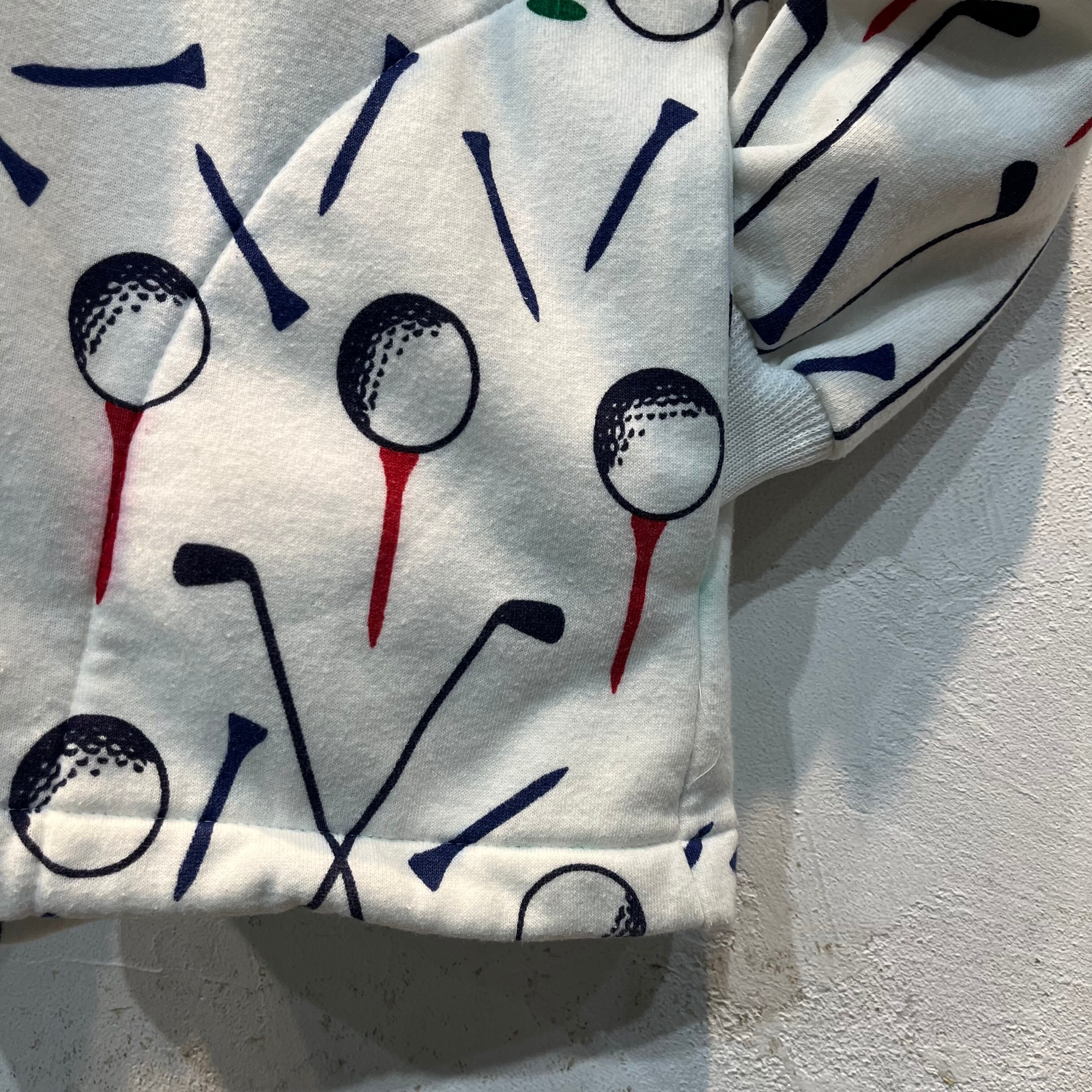 USA製 size:L-XL【 MICHIGAN RAG CO. 】ミシガンラグ スウェット ジャケット 総柄 ゴルフ柄 白 古着 古着屋 高円寺 ビンテージ