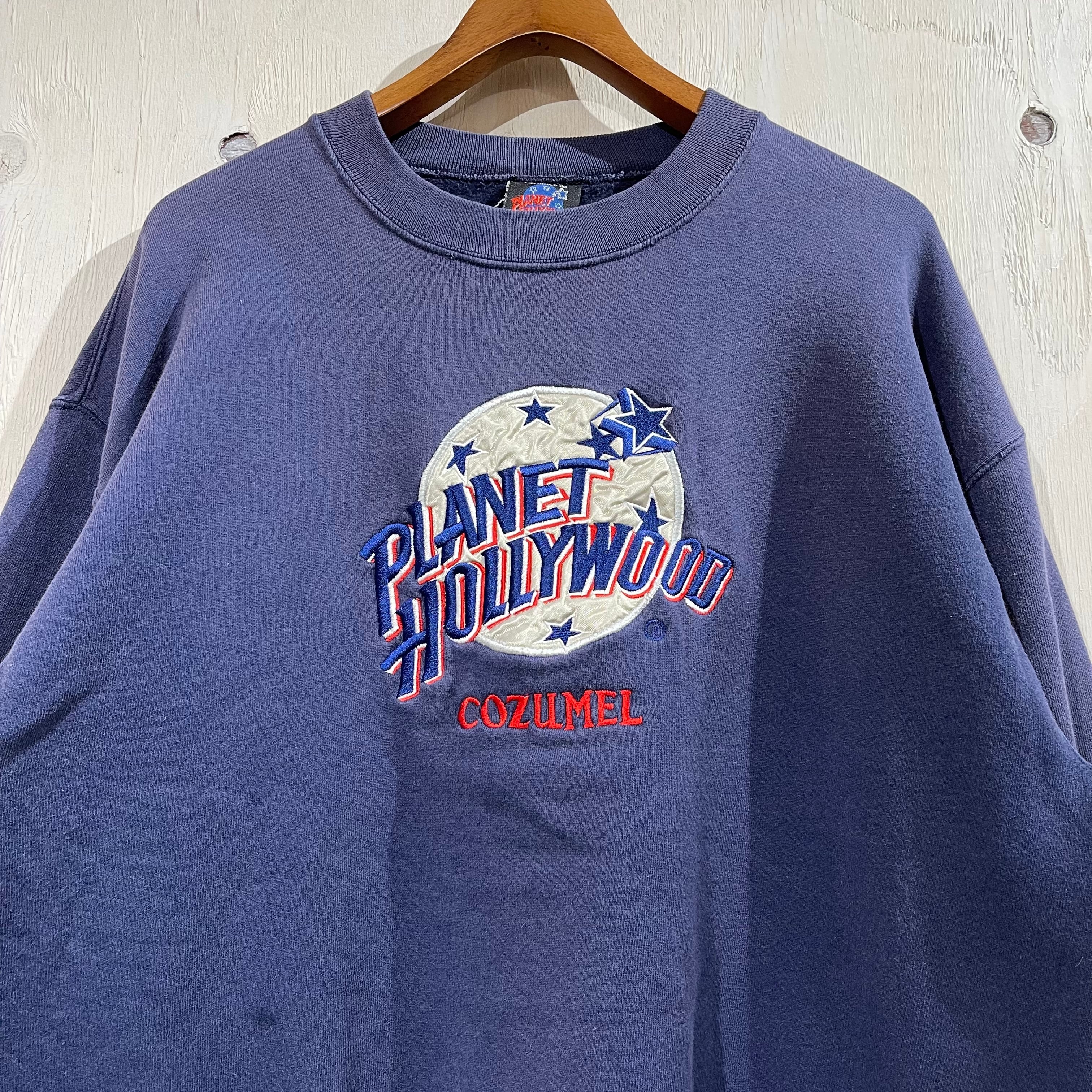 『L程度』PLANET HOLLYWOOD プラネットハリウッド プリントスウェット スウェット 刺繍 ネイビー 紺 古着 古着屋 高円寺 ビンテージ