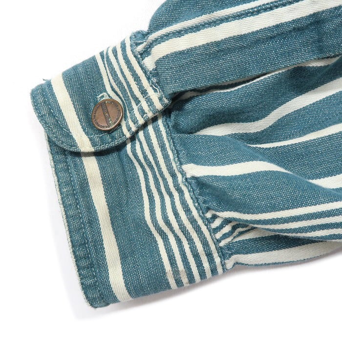 古着 USA製 長袖シャツ ストライプ ブルーグリーンベース ビンテージ サイズ表記:L gd75121 | 古着屋SLAT オンラインショップ 【古着通販】|東京 高円寺 レギュラー・ヴィンテージ古着