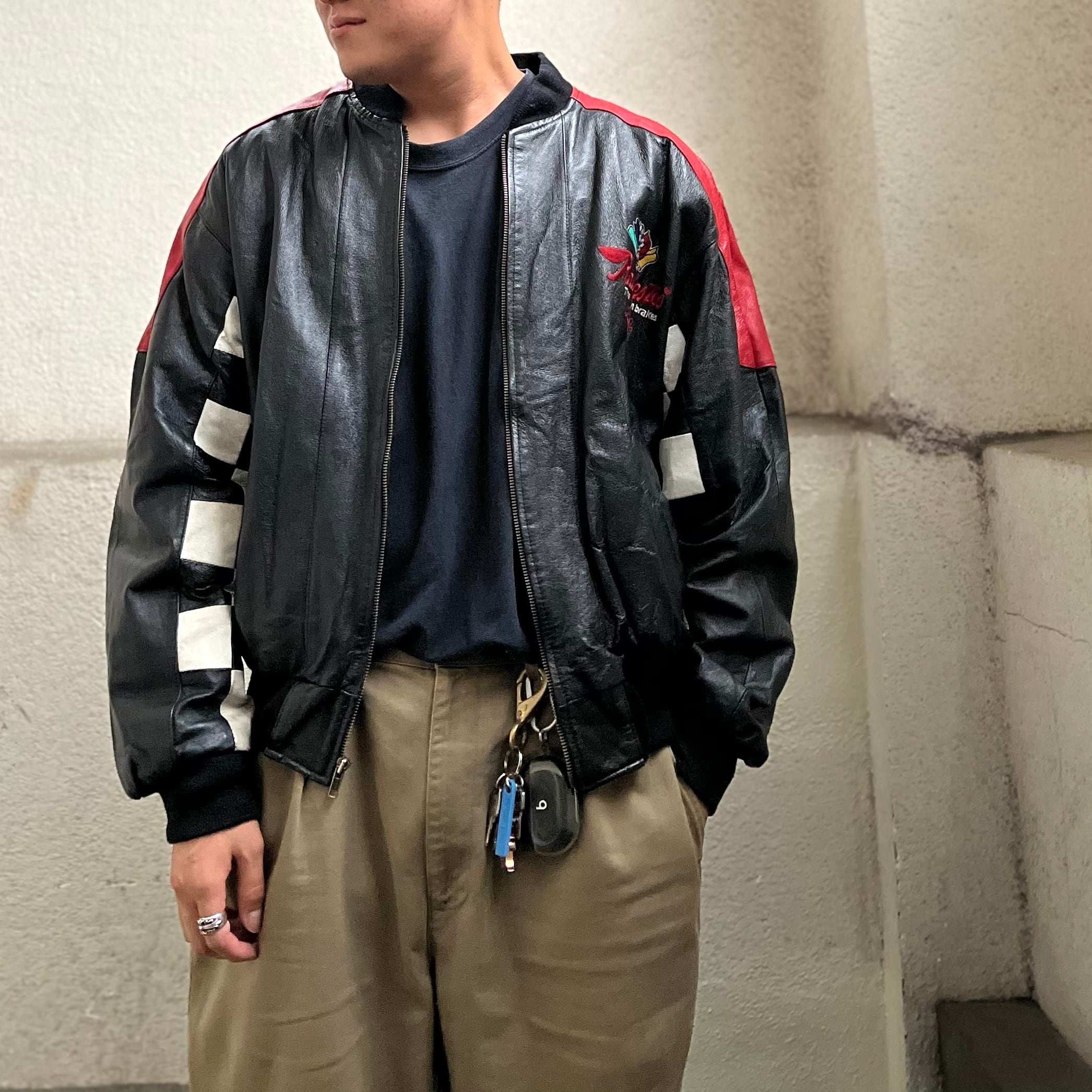 size:L【 NASCAR 】雰囲気系 Ewcelled ナスカー レーシング レザージャケット チェッカー