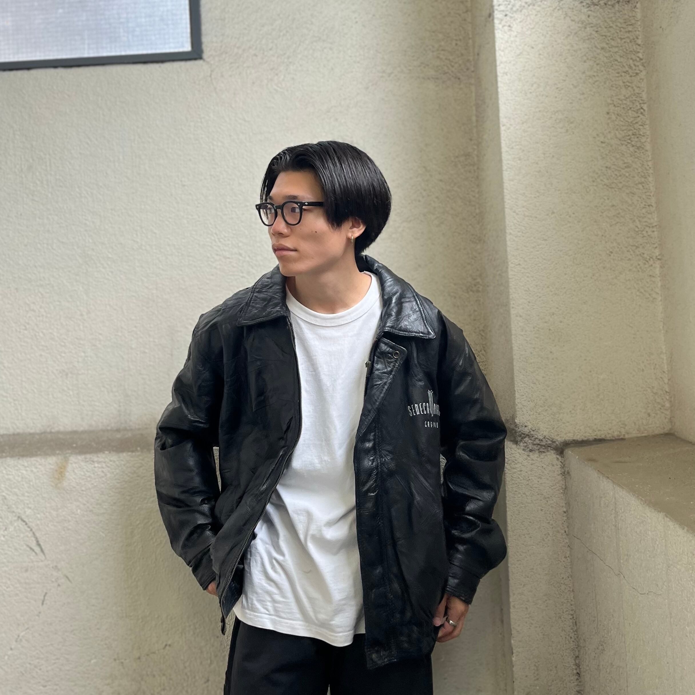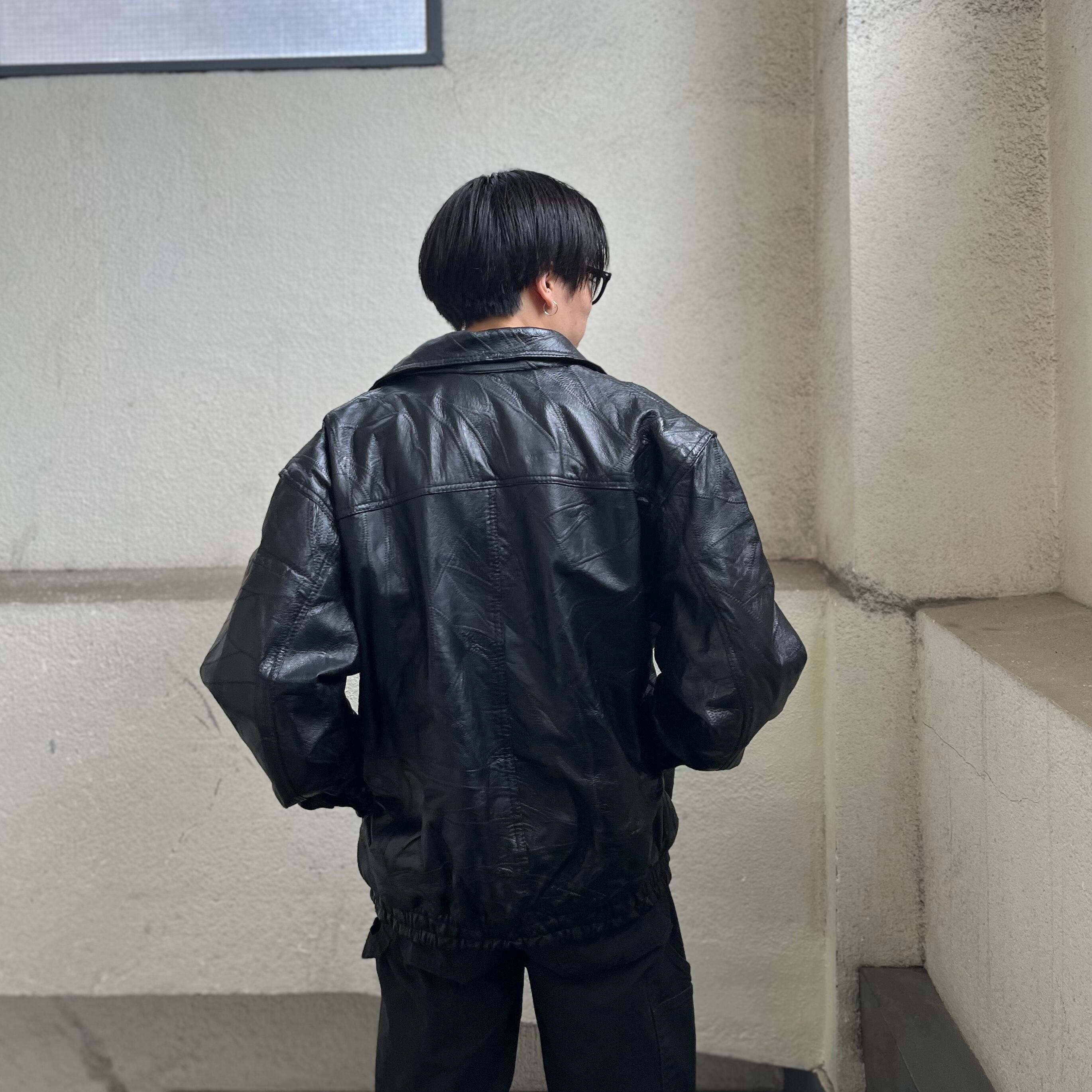 size:XL【 Roberto Amee 】レザージャケット ブルゾンタイプ 黒 古着 古着屋 ビンテージ