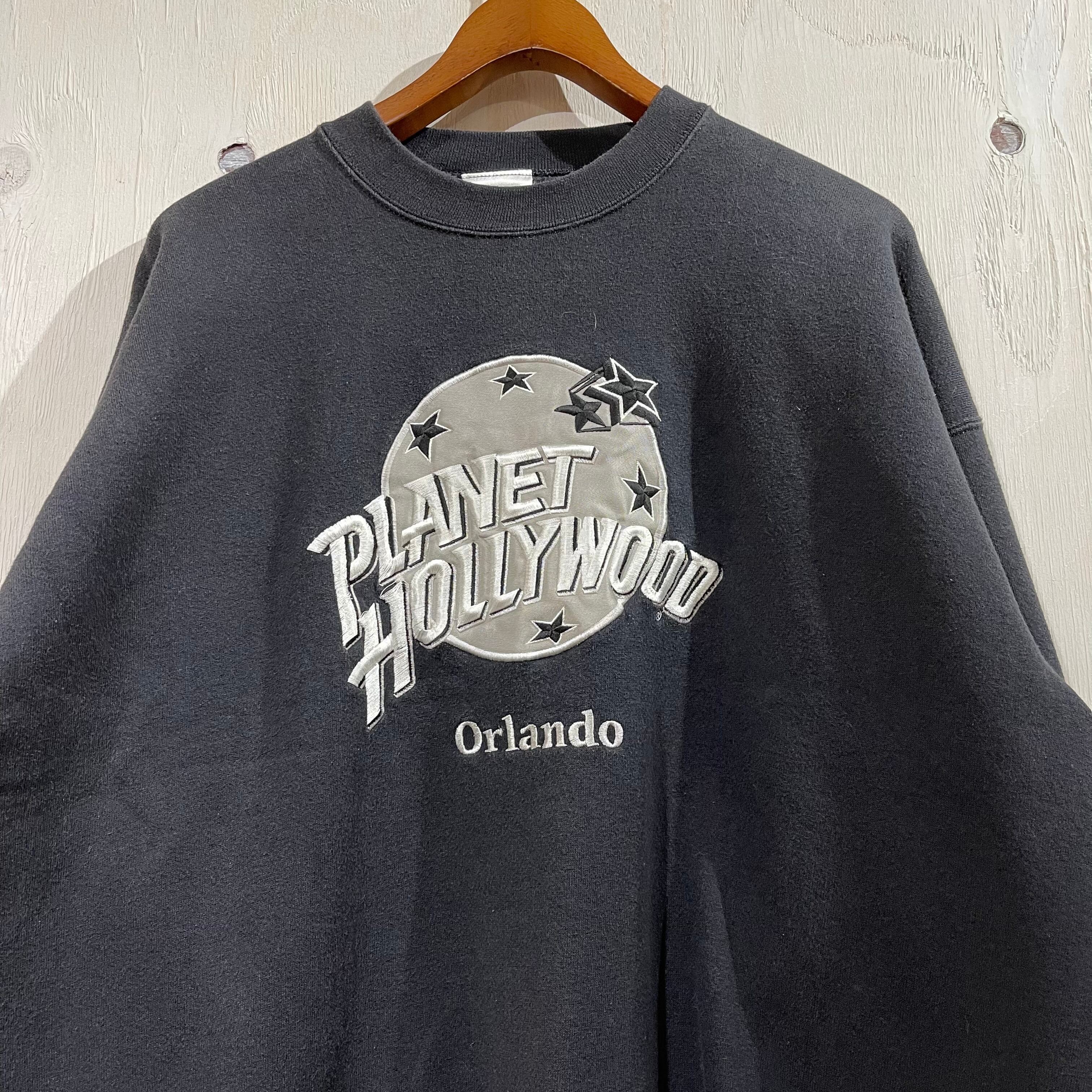 『L』USA製 PLANET HOLLYWOOD プラネットハリウッド プリントスウェット スウェット 黒 白 銀 古着 古着屋 高円寺 ビンテージ