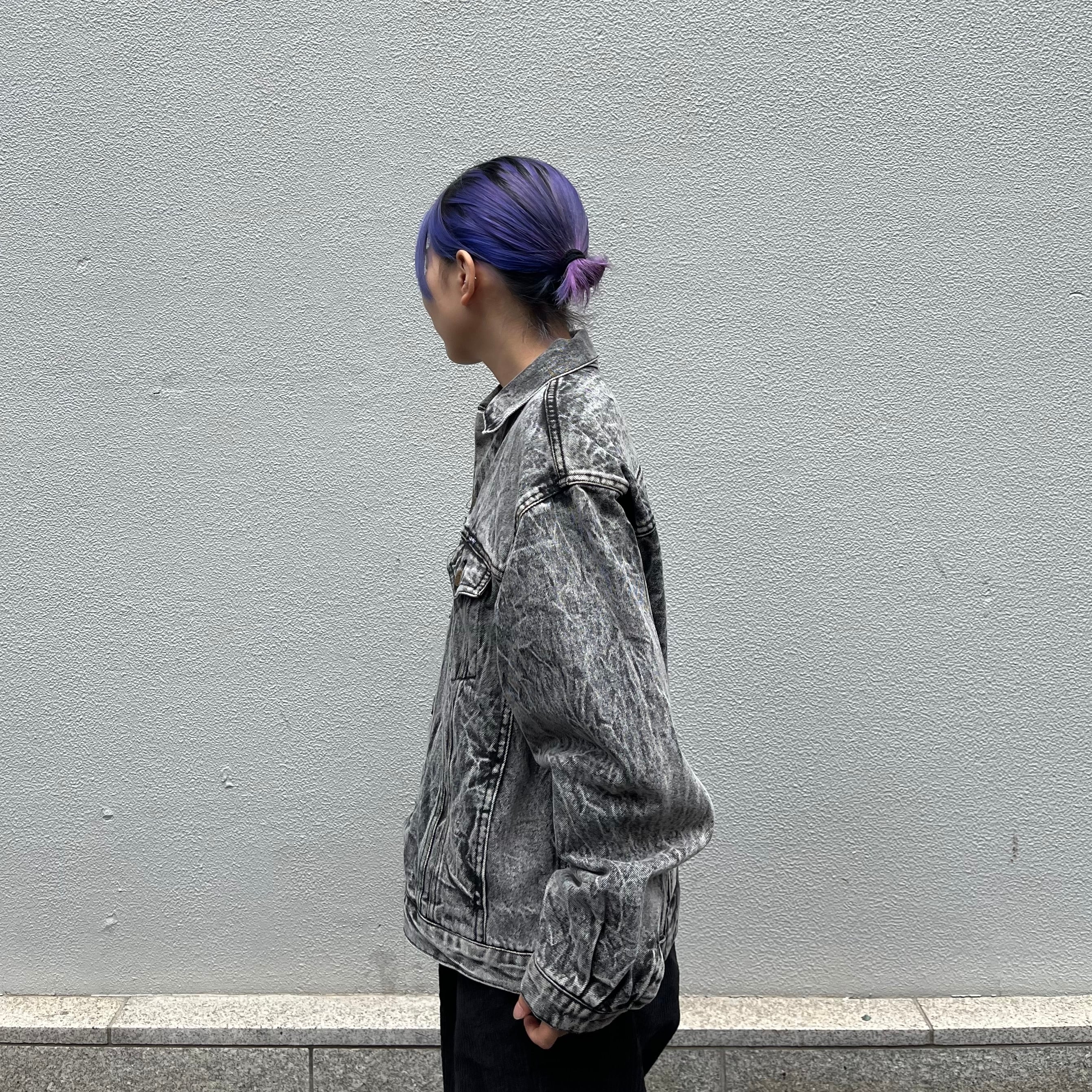 size : M【 GUESS 】ゲス デニムジャケット ブラックデニムジャケット ケミカルウォッシュ 黒