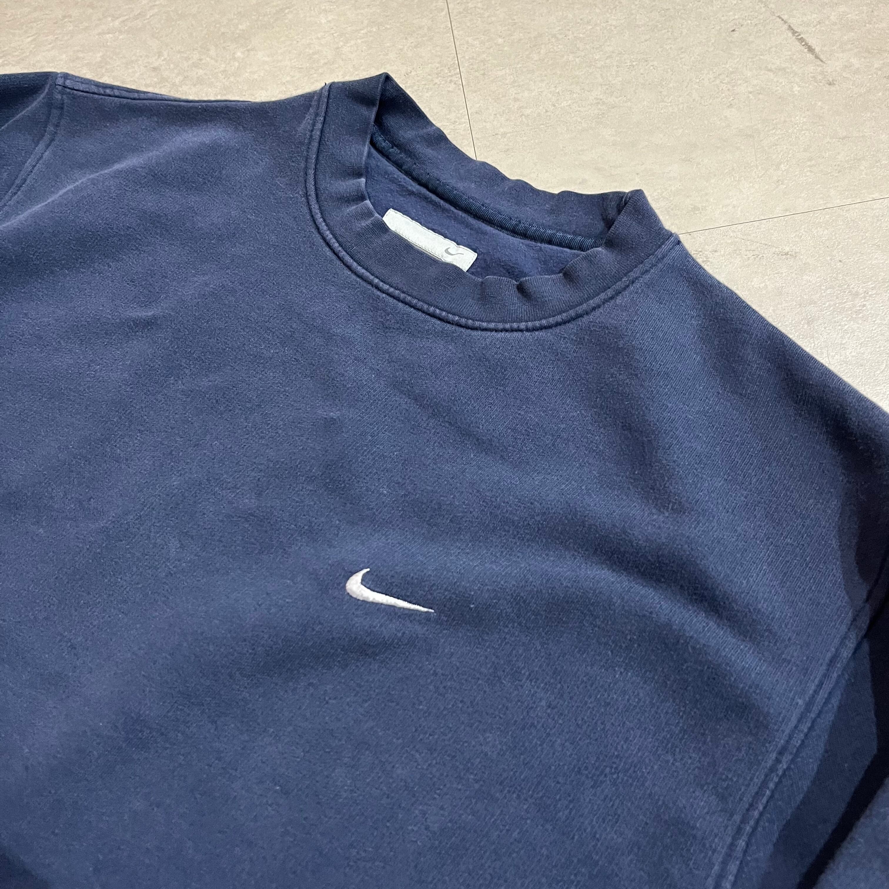 size : L【 NIKE 】ナイキ ロゴスウェット 胸ロゴ スウッシュ 刺繍ロゴ ネイビー 古着 古着屋 高円寺 ビンテージ