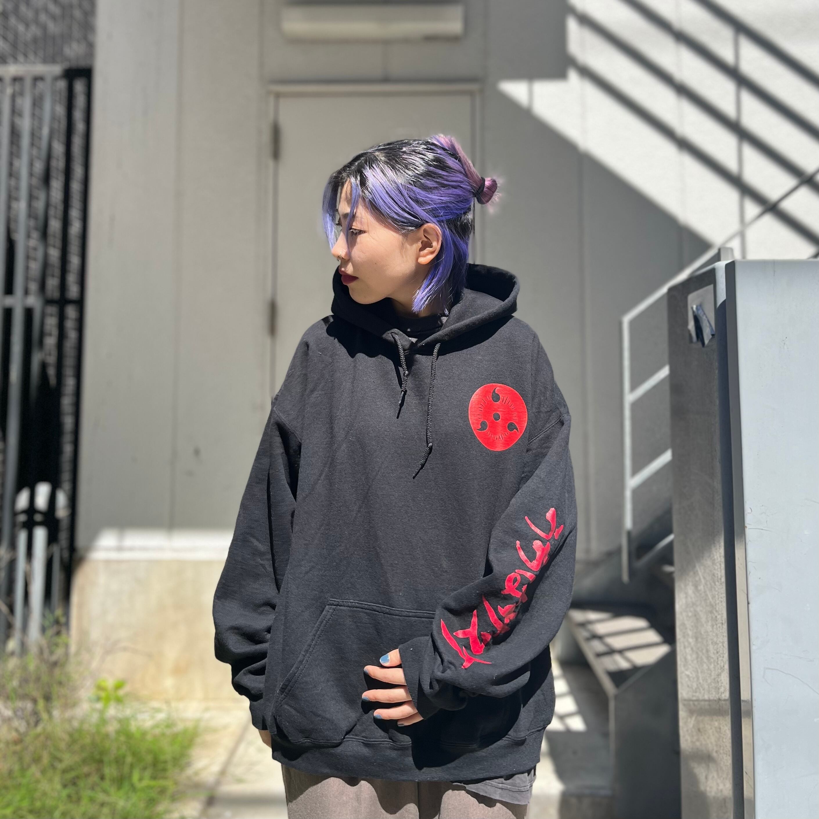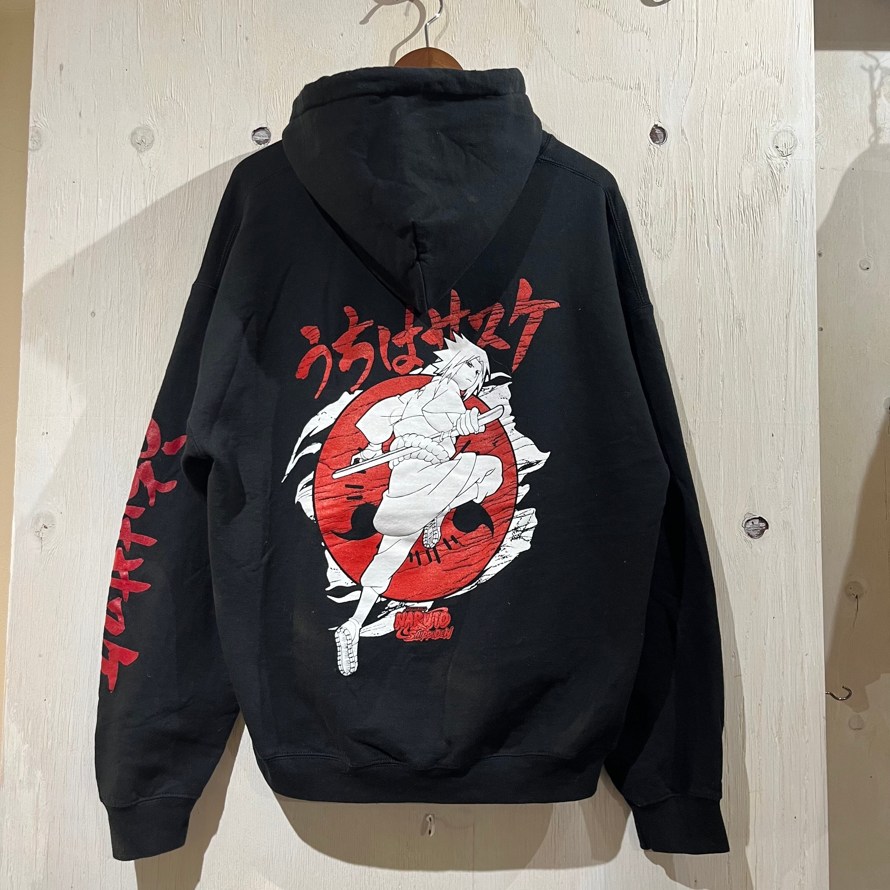 『L』NARUTO ナルト疾風伝 サスケ プルオーバーパーカー パーカー フーディー バックプリント 黒古着 古着屋 高円寺 ビンテージ