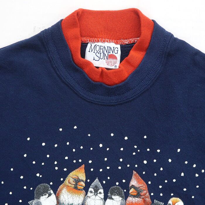 古着 90年代 USA製 ジャージーズ JERZEES プリントスウェット トレーナー モックネック ネイビー ビンテージ サイズ表記:L gd67692