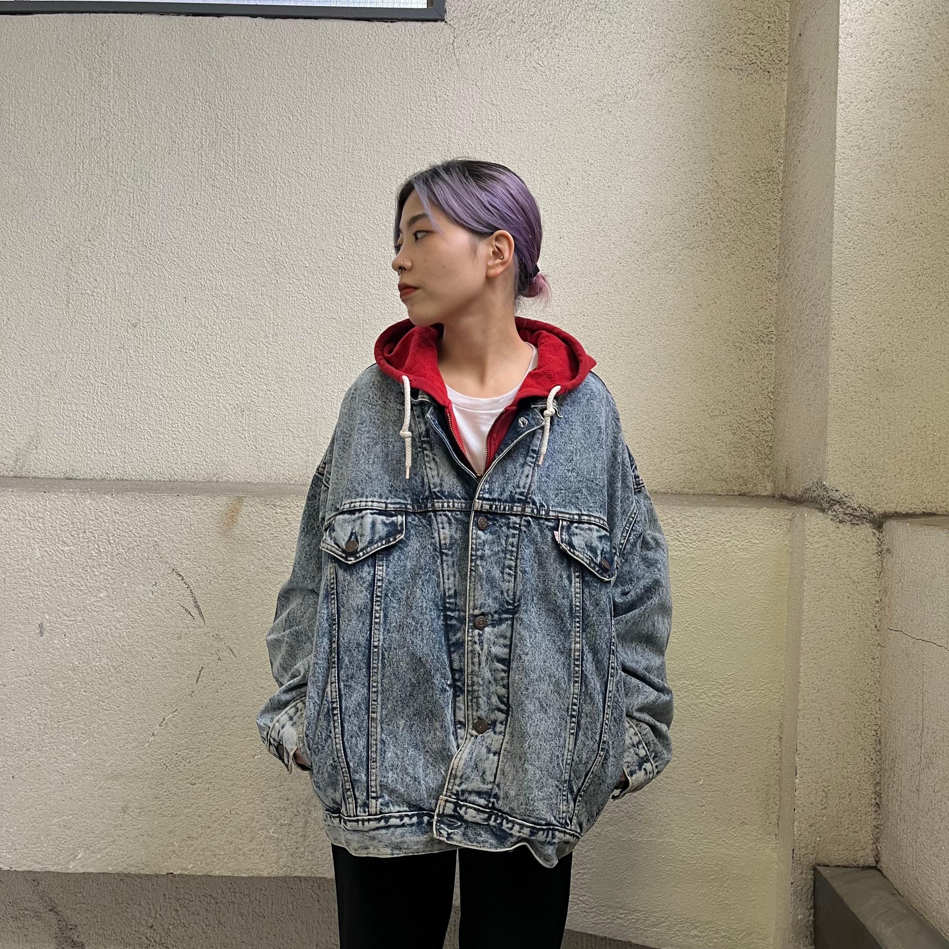 size:L【 Levi's 】リーバイス デニムジャケット フード デニム ブルー レッド 青 赤 古着 古着屋 高円寺 ビンテージ