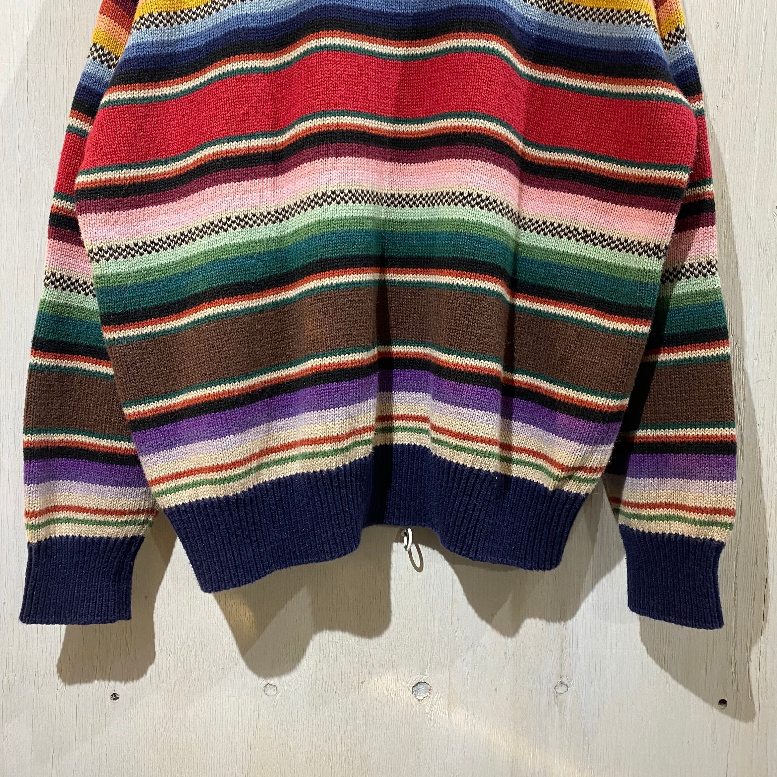 『XL』STRUCTURE コットンニット コットンセーター プルオーバー クルーネック マルチカラー ボーダー 古着 古着屋 高円寺 ビンテージ