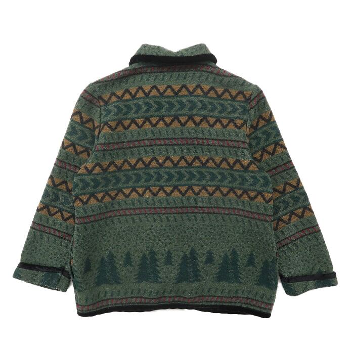 古着 レディース デザインジャケット ハーフコート 総柄 グリーンベース サイズ表記:S gd70206