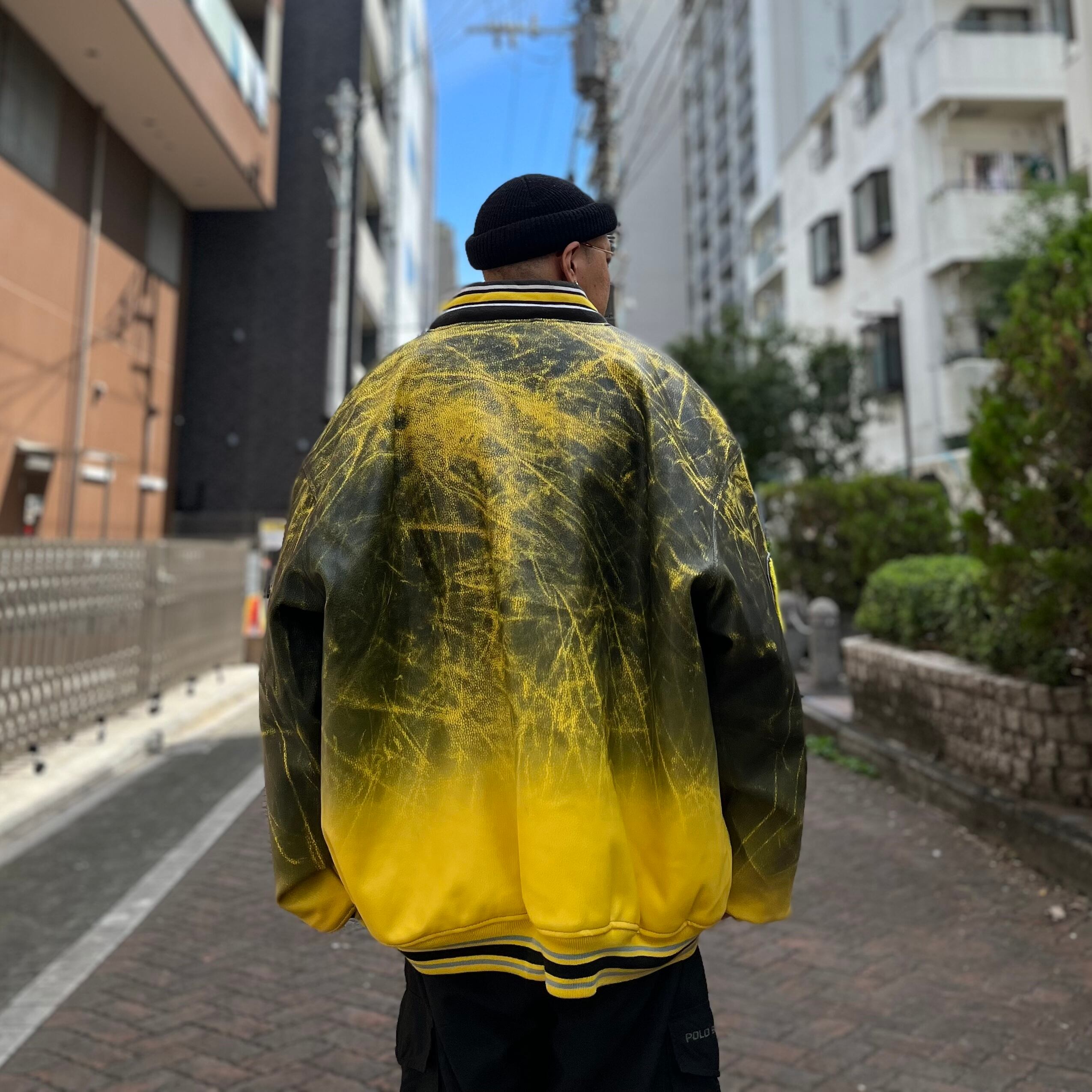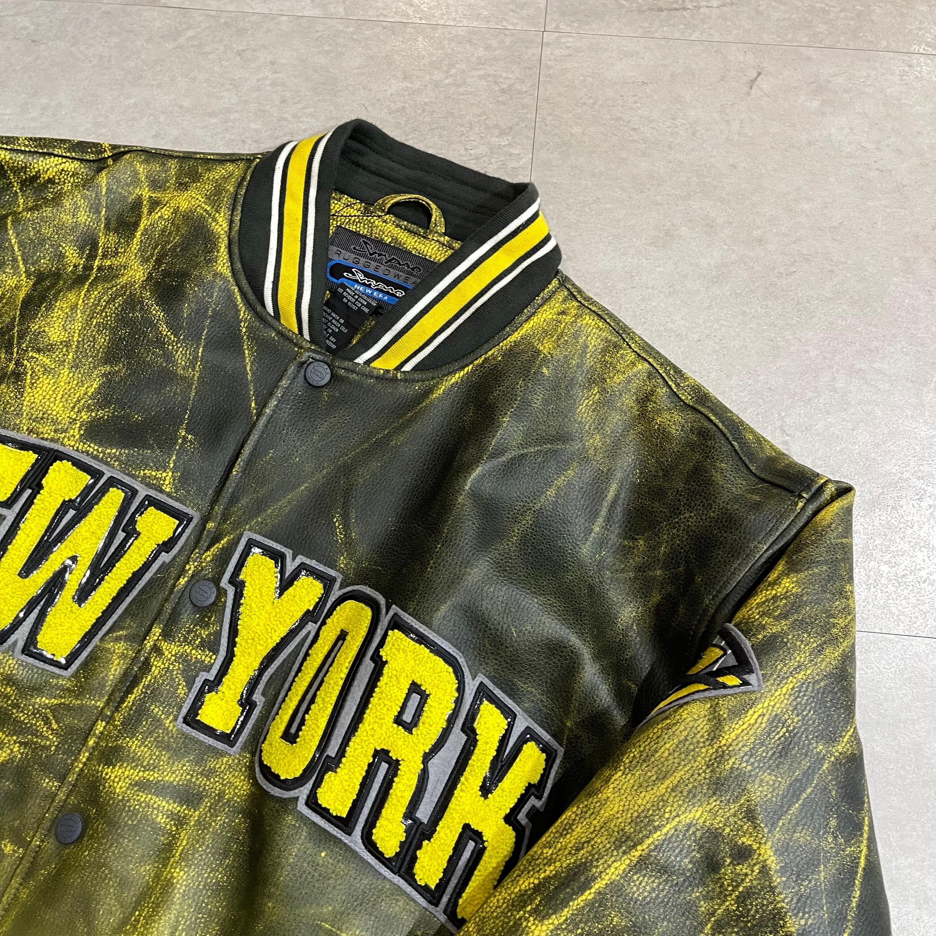 size:3XL【 NEW ERA 】NEW YORK レザージャケット 黄 黒 高円寺 古着 古着屋 ビンテージ