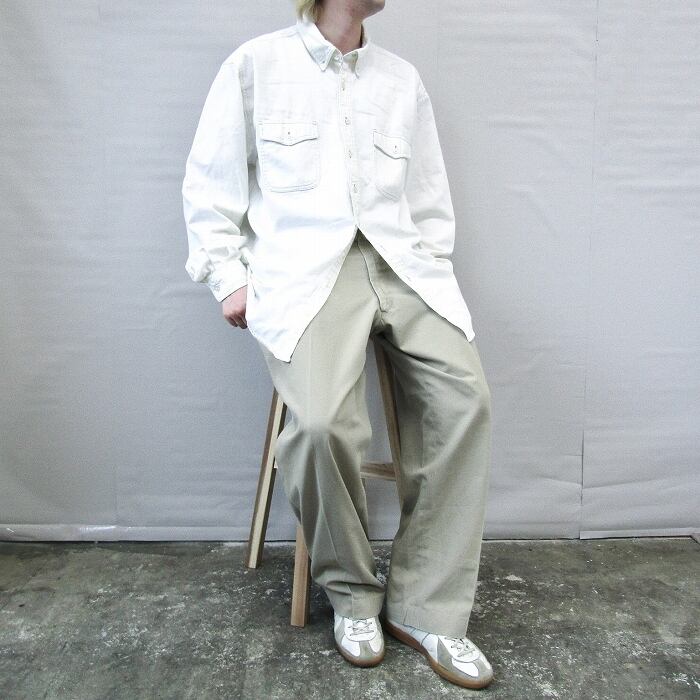 ■説明:全体的に使用感があるほか、バック左袖に汚れがありますが、古着慣れした方なら気にならない程度かと思います。着回しのきくホワイトカラーシャツです。(着用スタッフ身長:176cm)