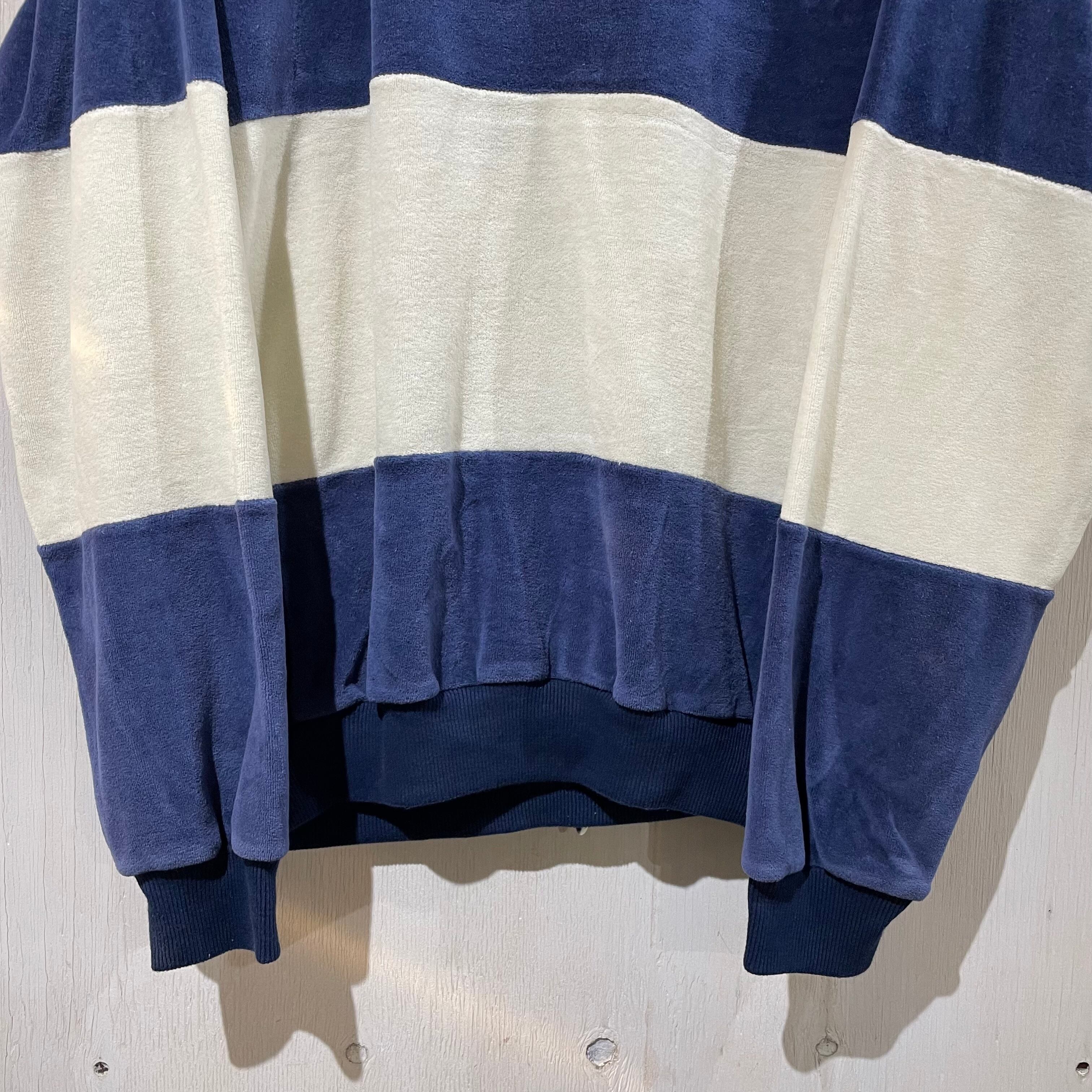 『XL』OAKTON ベロアカットソー プルオーバー ボーダー 青×白 古着 古着屋 高円寺 ビンテージ
