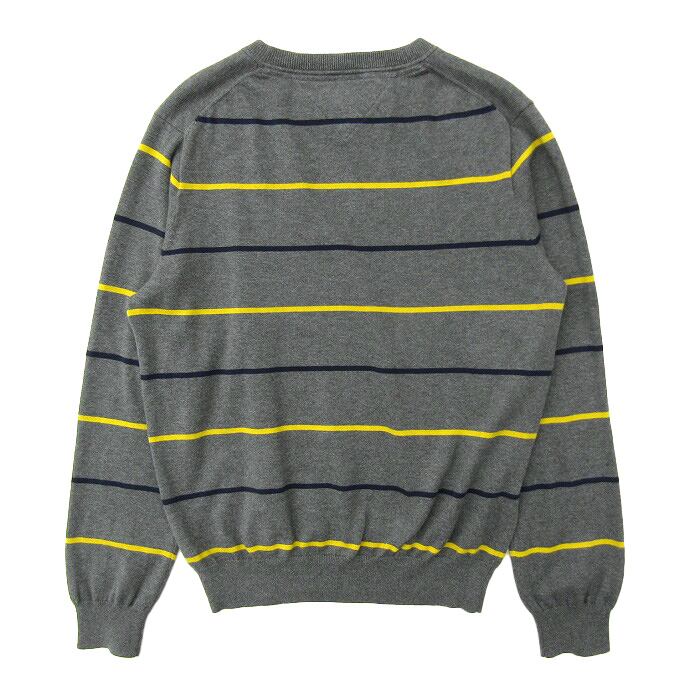 古着 TOMMY トミーヒルフィガー コットンニット セーター ボーダー グレーベース サイズ表記:L gd75587