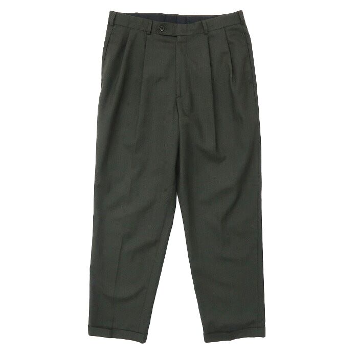 古着 ウール スラックス パンツ ツータック モスグリーン サイズ表記:W34L32 gd77039