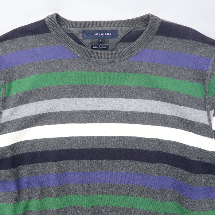 古着 TOMMY トミーヒルフィガー コットンニット セーター ボーダー マルチカラー サイズ表記:L gd76723 | 古着屋SLAT オンラインショップ 【古着通販】|東京 高円寺 レギュラー・ヴィンテージ古着