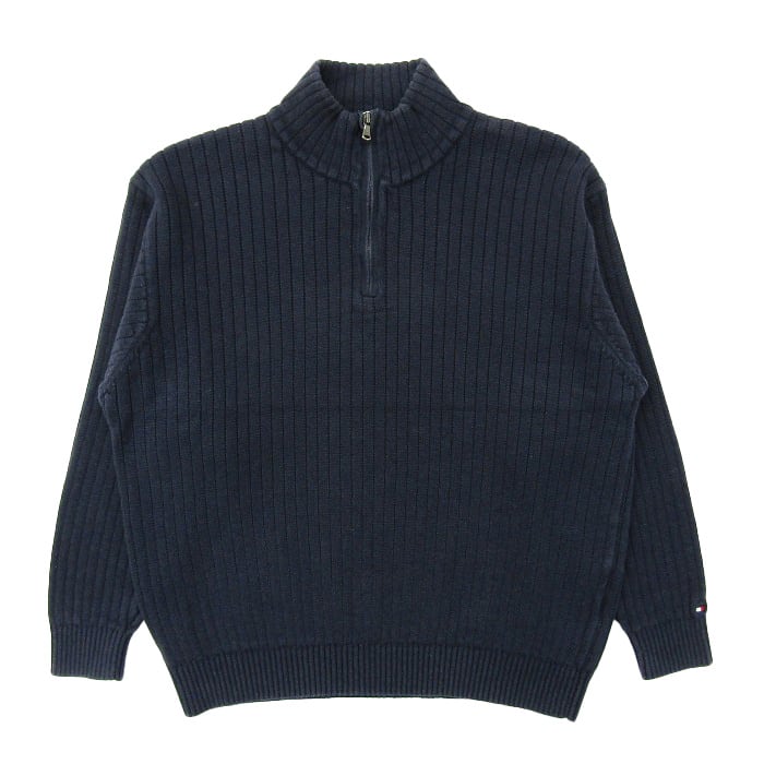 古着 TOMMY トミーヒルフィガー プルオーバー コットンウールニット セーター ハーフジップ ネイビー サイズ表記:L gd76397 | 古着屋SLAT オンラインショップ 【古着通販】|東京 高円寺 レギュラー・ヴィンテージ古着