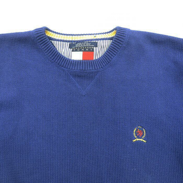 古着 TOMMY トミーヒルフィガー コットンニット セーター ワンポイント ブルー サイズ表記:XL gd75320