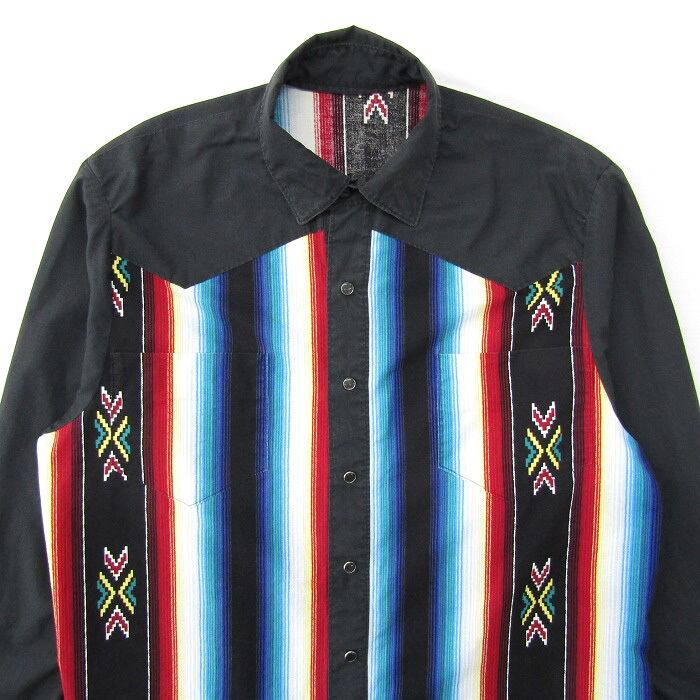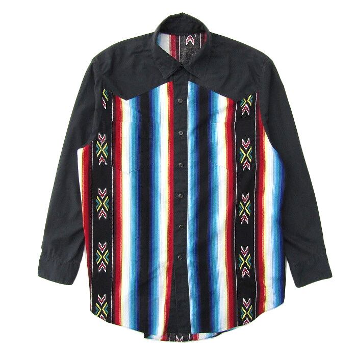 古着 ウエスタンシャツ ストライプ ネイティブ柄 長袖 ブラックベース サイズ表記:-- gd75951 | 古着屋SLAT オンラインショップ 【古着通販】|東京 高円寺 レギュラー・ヴィンテージ古着