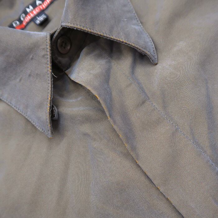 ■説明:全体的に使用感があるほか、数か所に汚れや色落ち、フロント中央に糸引きがありますが、古着慣れした方なら気にならない程度かと思います。緑がかったグレーが光の具合で青白く光る玉虫色が特徴的な一着です◎