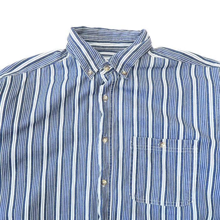 古着 ボタンダウンシャツ ストライプ 長袖 ネイビー グレー ホワイト サイズ表記:L gd75751 | 古着屋SLAT オンラインショップ 【古着通販】|東京 高円寺 レギュラー・ヴィンテージ古着