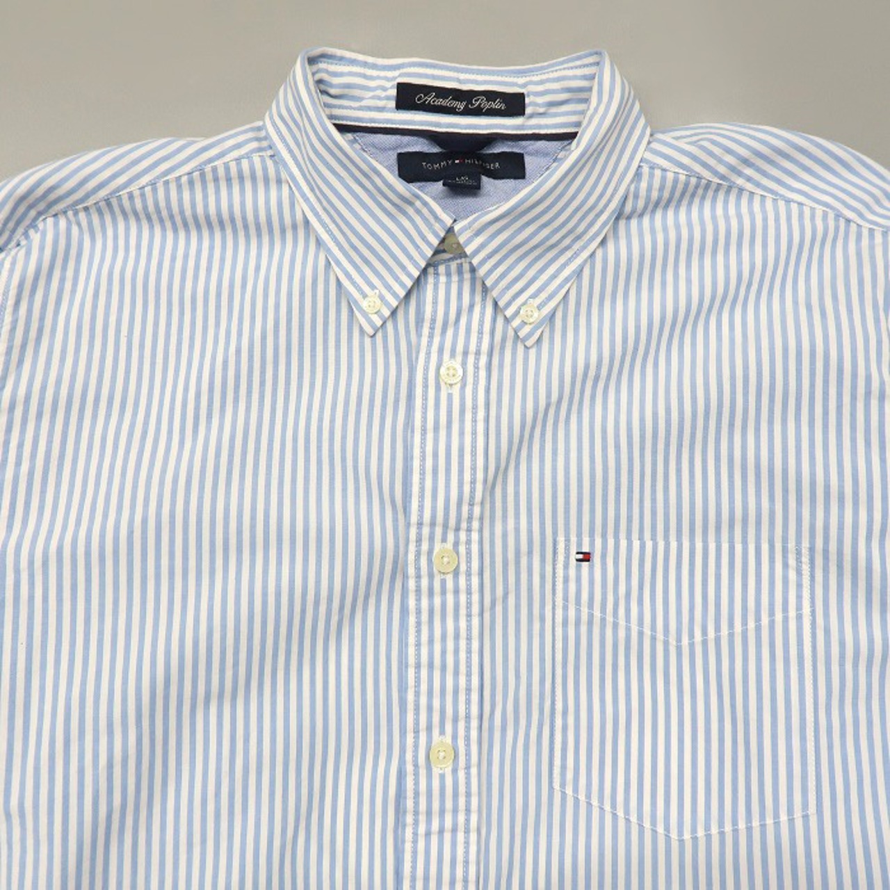 古着 TOMMY トミーヒルフィガー ボタンダウンシャツ 長袖 ストライプ ワンポイント ブルー ホワイト サイズ表記:L gd75596 | 古着屋SLAT オンラインショップ 【古着通販】|東京 高円寺 レギュラー・ヴィンテージ古着