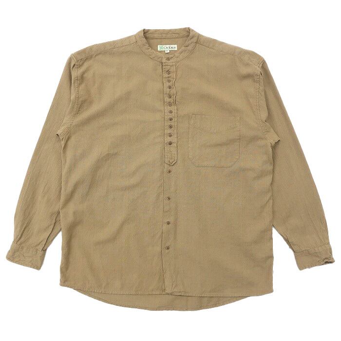 古着 バンドカラーシャツ 長袖 ライトブラウン サイズ表記:XL gd75730
